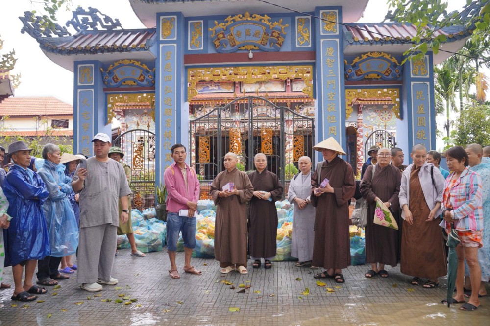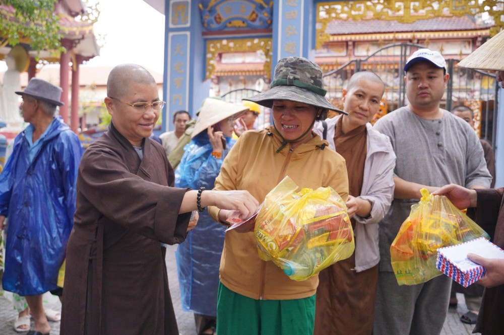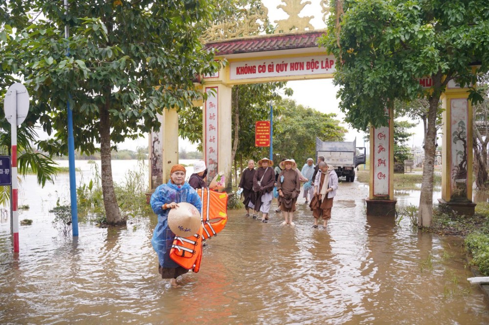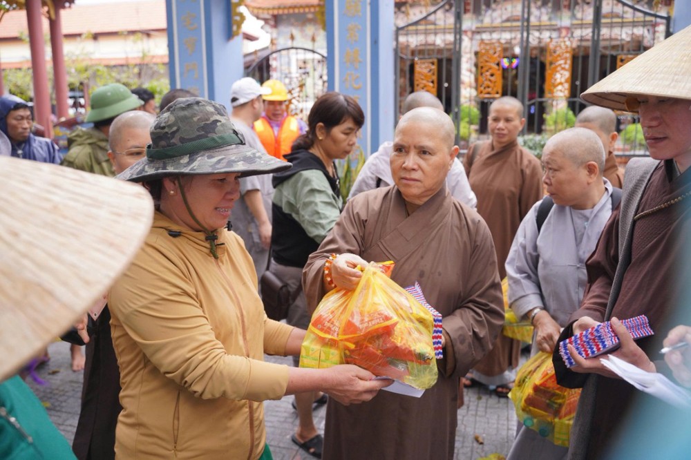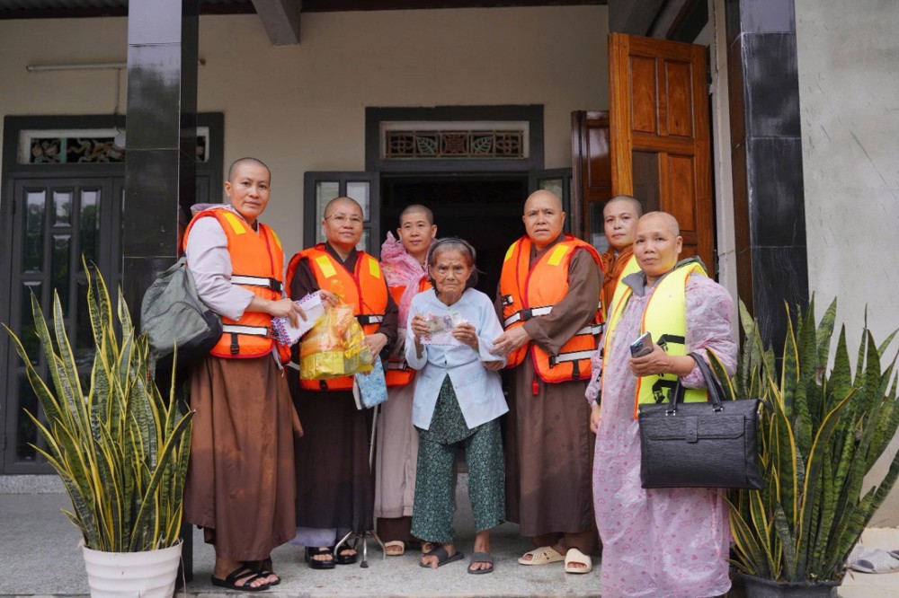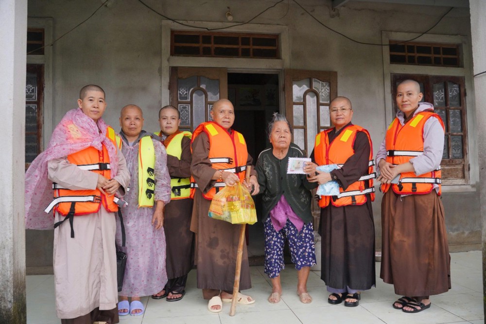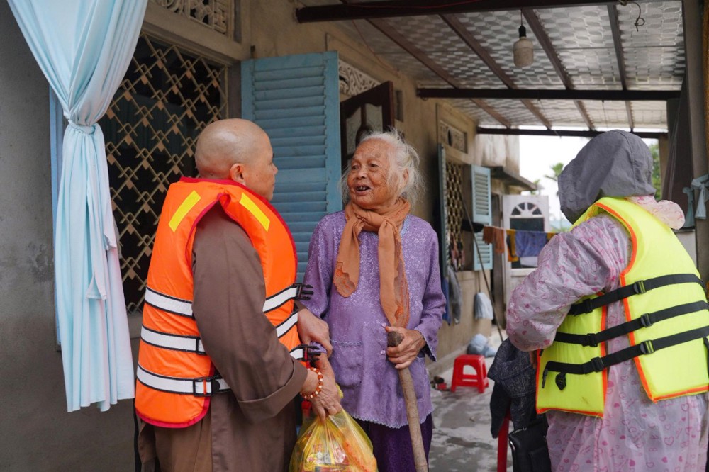 Bên cạnh đó, đoàn còn chủ động đến tận các khu vực bị cô lập, trao quà tận tay cho những hộ dân có nhà bị ngập sâu, không thể di chuyển ra ngoài do nước lũ, thể hiện tinh thần từ bi – cứu khổ của người con Phật và tấm lòng tương thân tương ái của Tăng Ni, Phật tử tỉnh Đồng Nai.