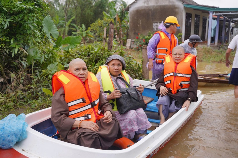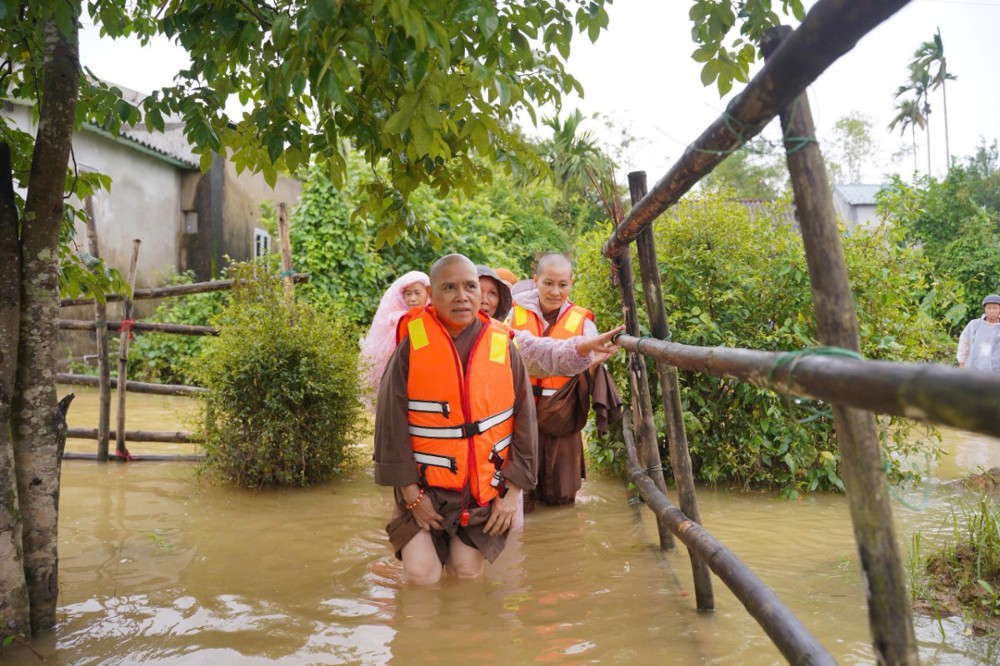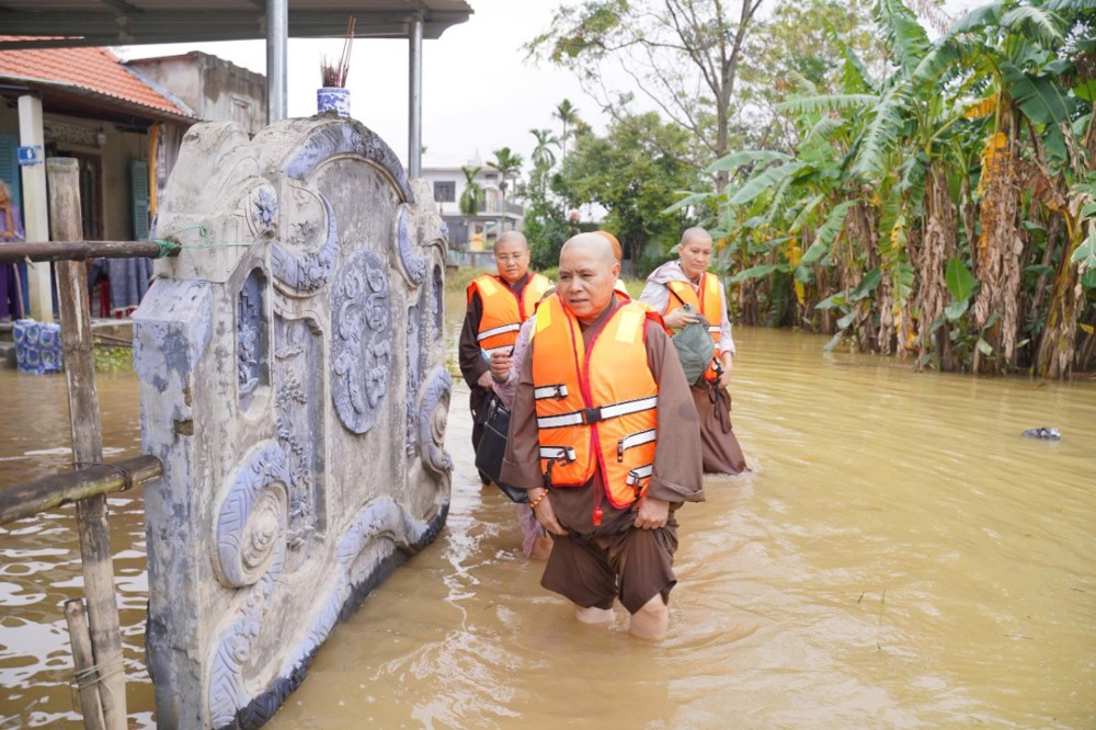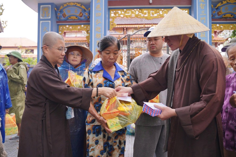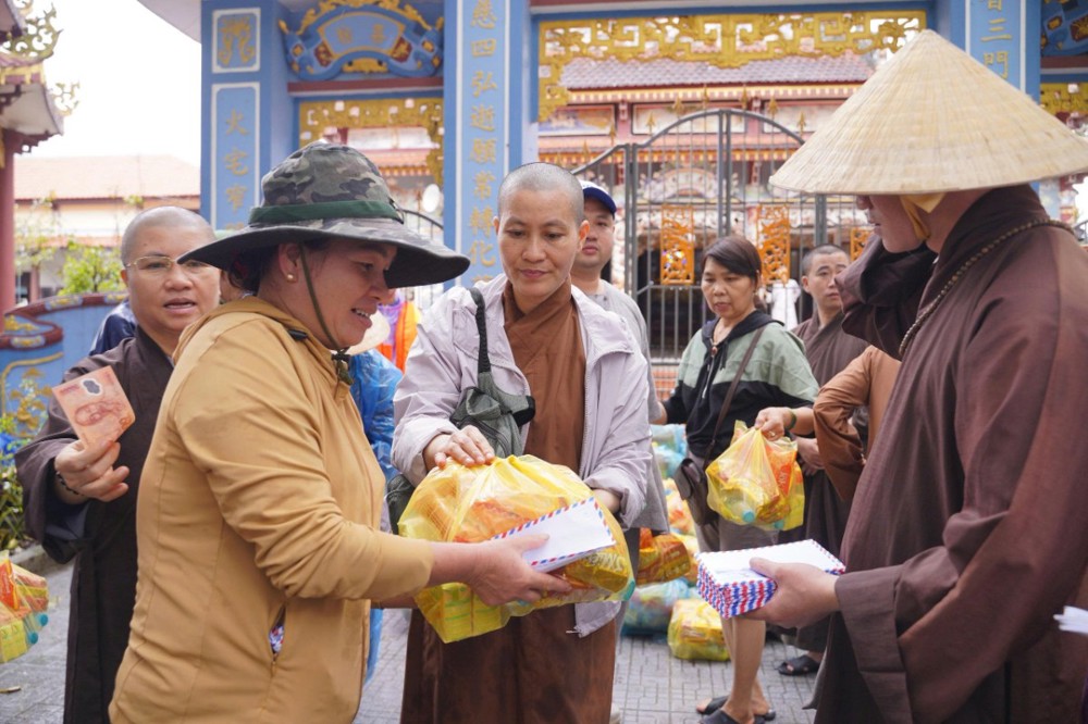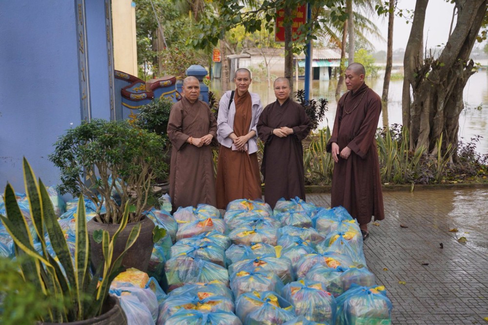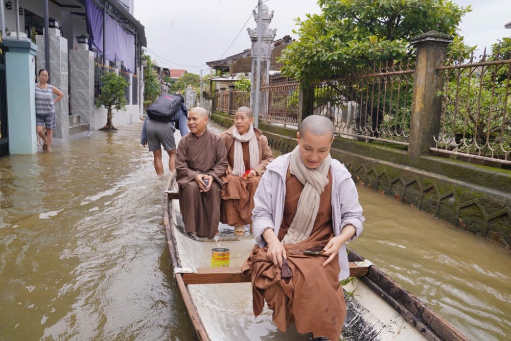 Bên cạnh đó, đoàn còn chủ động đến tận các khu vực bị cô lập, trao quà tận tay cho những hộ dân có nhà bị ngập sâu, không thể di chuyển ra ngoài do nước lũ, thể hiện tinh thần từ bi – cứu khổ của người con Phật và tấm lòng tương thân tương ái của Tăng Ni, Phật tử tỉnh Đồng Nai.