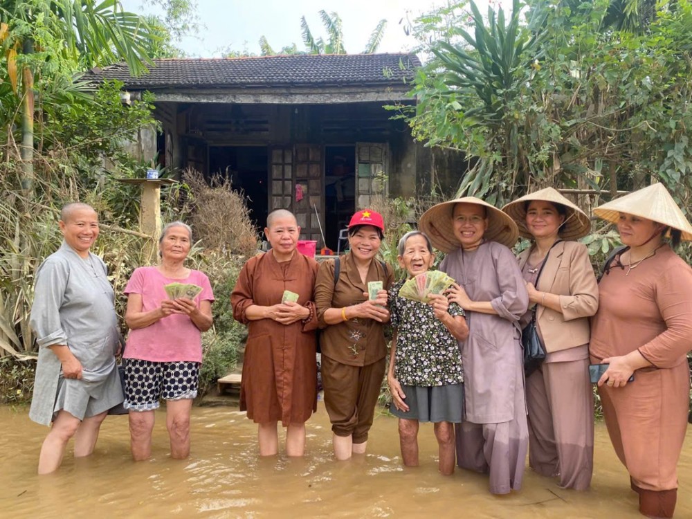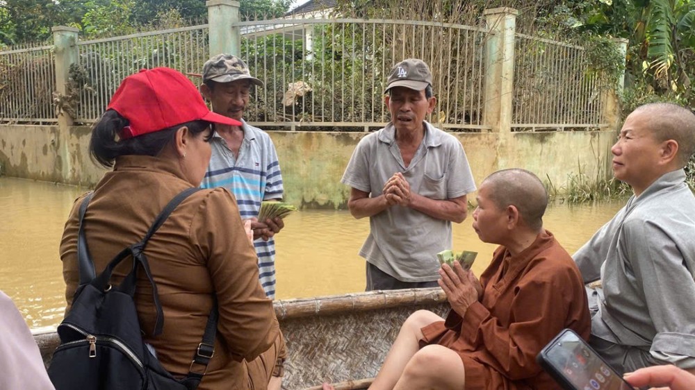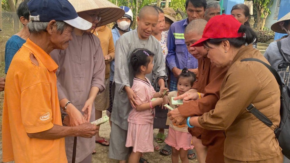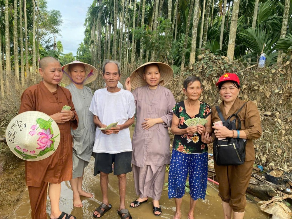 Cùng thời điểm, Ni sư Thích Nữ Diệu Hoa – trụ trì chùa Tịnh Đoạn (Đồng Nai), đã trao tặng 400 phần quà gồm thùng mì, bánh và các nhu yếu phẩm thiết yếu đến bà con tại thôn Hà Nhuận, xã Duy Xuyên, với tổng trị giá 160 triệu đồng, góp phần sẻ chia khó khăn, lan tỏa tinh thần từ bi và nghĩa tình của người con Phật.
