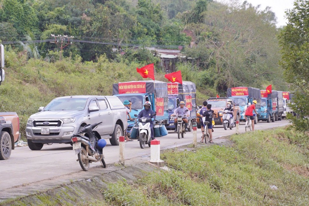 Đoàn đã tiếp tục vượt gần 80km để đến với bà con xã Đồng Xuân (Phú Yên), trao tận tay 150 phần quà nhằm sẻ chia khó khăn sau thiên tai. Ngay sau đó, đoàn tiếp tục di chuyển đến xã Tuy Hòa, nơi 630 phần quà đã được gửi đến bà con đang oằn mình khắc phục hậu quả mưa lũ, góp phần mang lại chút ấm áp và động lực trong giai đoạn đầy thử thách.
