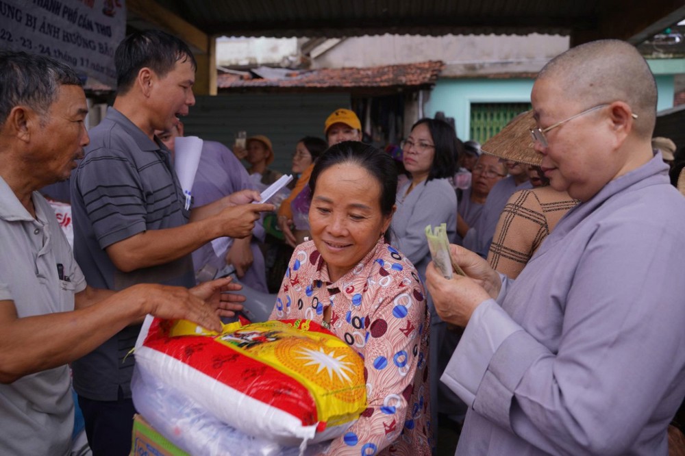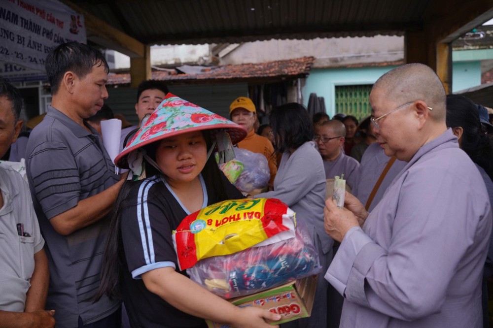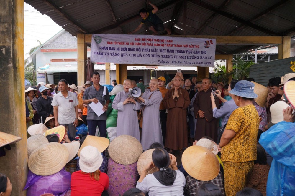 Thay mặt Ban Từ thiện xã hội GHPGVN TP. Cần Thơ, Ni sư Thích Nữ Chơn Như đã gửi lời thăm hỏi và chia sẻ sâu sắc đến bà con vùng lũ, động viên mọi người giữ vững tinh thần trước những mất mát do mưa lũ gây ra. Ni sư bày tỏ sự cảm thông trước khó khăn của từng hộ dân, đồng thời khuyến tấn bà con cố gắng gìn giữ sức khỏe, đoàn kết hỗ trợ nhau để sớm ổn định cuộc sống. Ni sư nhấn mạnh rằng những phần quà được trao tuy không lớn nhưng chứa đựng tấm lòng của Tăng Ni, Phật tử TP. Cần Thơ, mong bà con sớm vượt qua khó khăn và trở lại cuộc sống bình yên.