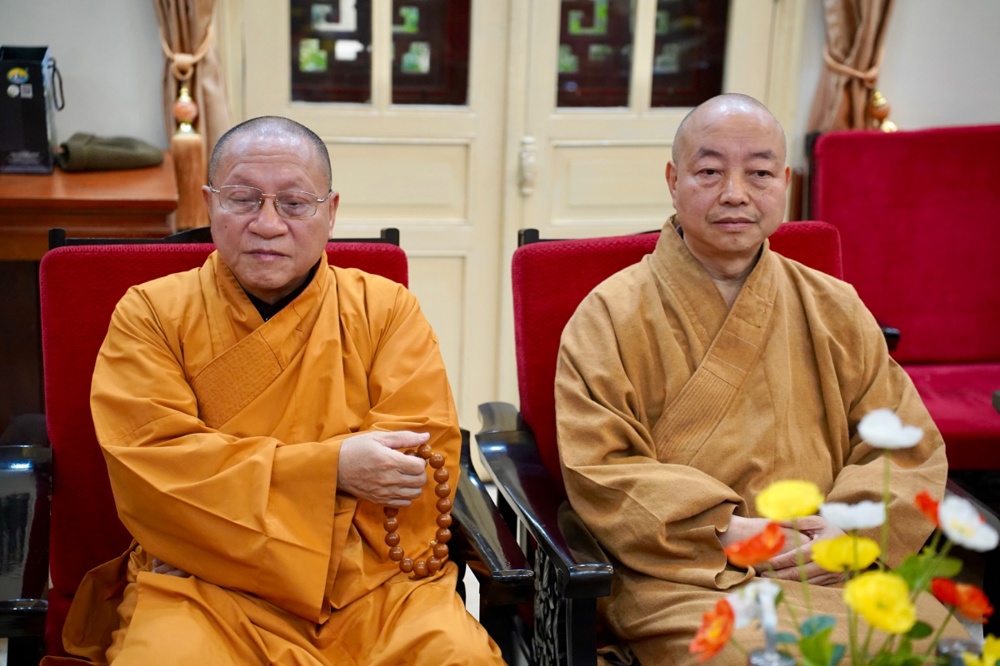 Tiếp đoàn có Trưởng lão Hòa thượng Thích Thanh Nhiễu – Ủy viên Thường trực Hội đồng Chứng minh, Phó Chủ tịch Thường trực Hội đồng Trị sự (HĐTS); Hòa thượng Thích Gia Quang – Phó Chủ tịch HĐTS, Trưởng ban Thông tin – Truyền thông Trung ương; Hòa thượng Thích Thanh Huân – Ủy viên Thư ký, Phó Chánh Văn phòng Trung ương Giáo hội; Đại đức Thích Nguyên Chính, Ủy viên Thư ký Hội đồng Trị sự, Phó Chánh Văn phòng Thường trực TƯ GHPGVN, cùng chư Tôn đức cán bộ Văn phòng 1 Trung ương GHPGVN.