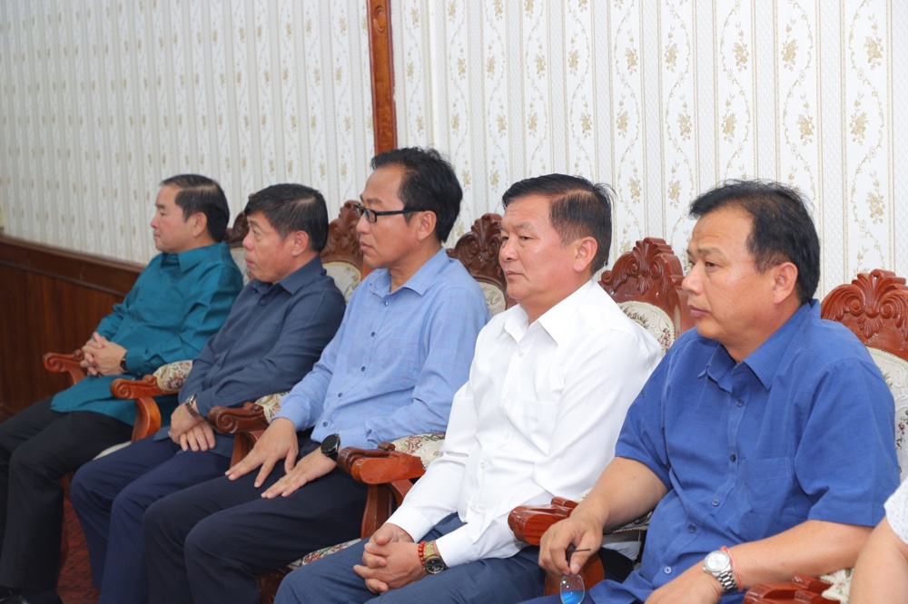 Tiếp phái đoàn tại HĐND tỉnh Xiêng Khoảng có ông Phu-Vông Ủn-Khăm-Sẻn — Ủy viên Trung ương Đảng, Bí thư Tỉnh ủy, Chủ tịch HĐND tỉnh Xiêng Khoảng cùng các cán bộ lãnh đạo tỉnh.