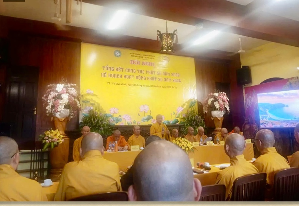 Ngày 20 tháng 01 năm 2026 (nhằm ngày 02 tháng 12 năm Ất Tỵ), tại Văn phòng Thường trực Ban Văn hóa Trung ương, chùa Pháp Hoa, số 870 Trường Sa, phường Nhiêu Lộc, TP. Hồ Chí Minh; Trong tinh thần phụng sự Đạo pháp –là pSO Dân tộc – Chủ nghĩa xã hội, Ban Văn hóa Trung ương Giáo hội Phật giáo Việt Nam long trọng tổ chức Hội nghị Tổng kết công tác Phật sự năm 2025 và triển khai Kế hoạch hoạt động Phật sự năm 2026, nhằm đánh giá những thành tựu đã đạt được và đề ra phương hướng hoạt động trong thời gian tới.