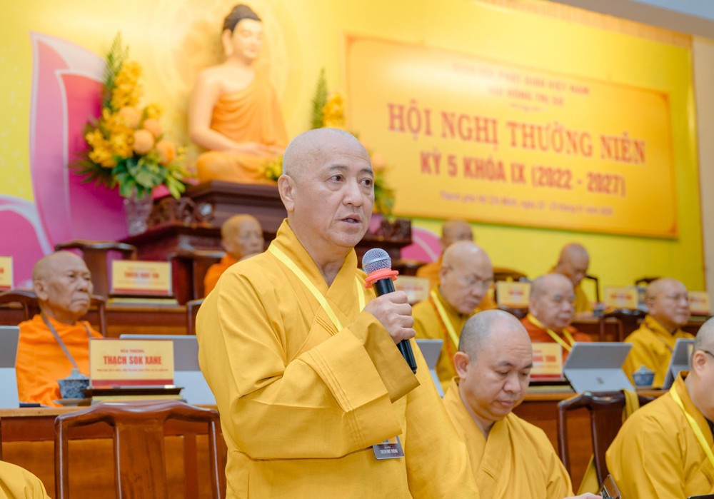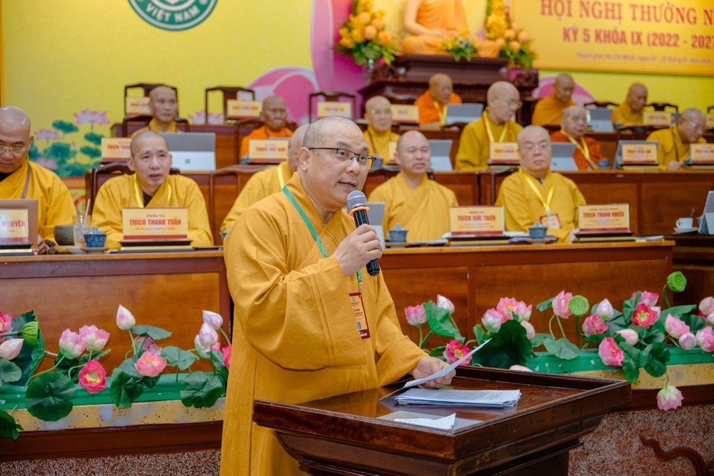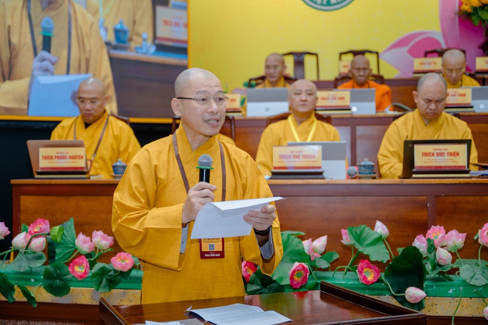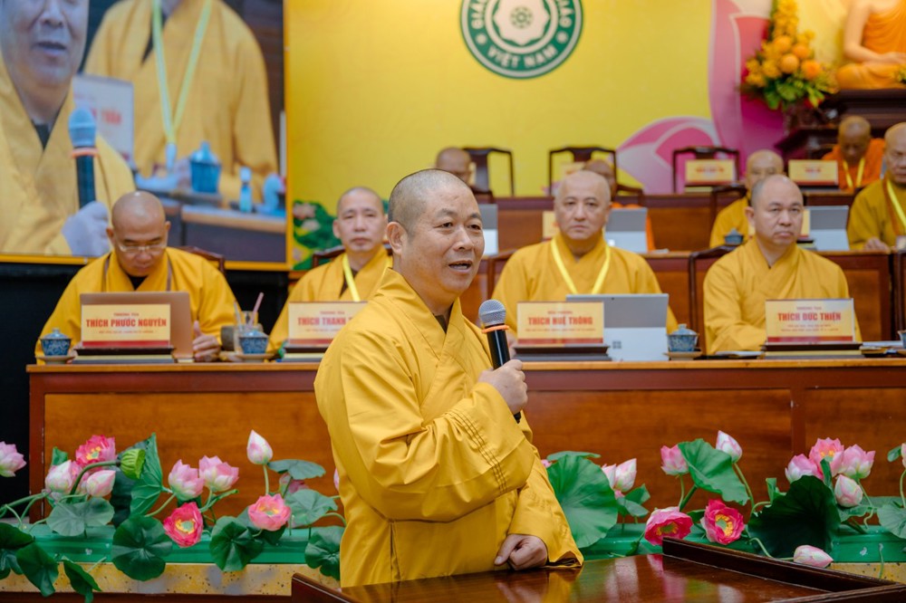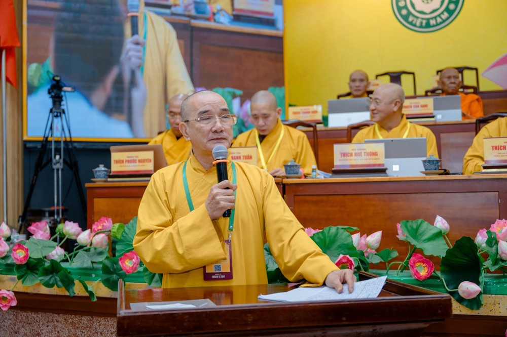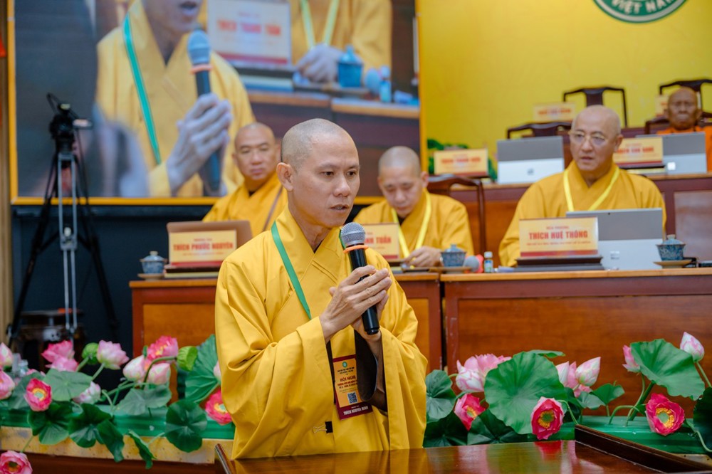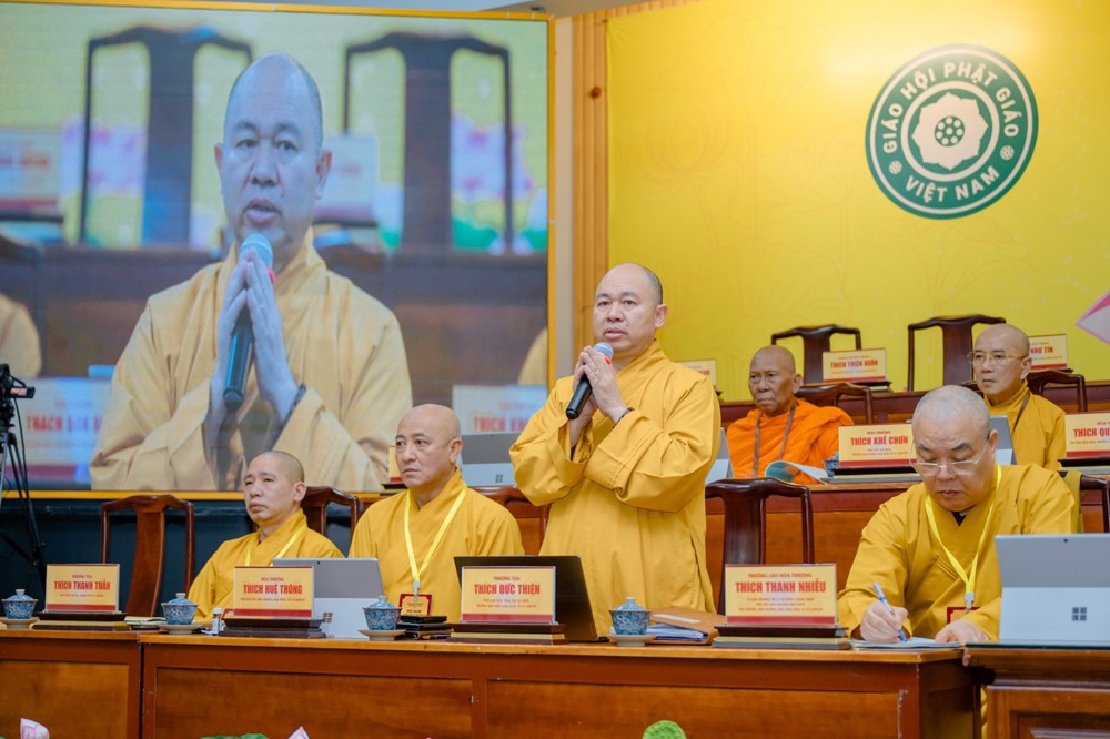 Tiếp thu toàn bộ ý kiến của đại biểu, Hòa thượng Phó Chủ tịch đã lần lượt giải trình cụ thể, làm rõ từng nội dung trên tinh thần Hiến chương, Quy chế, các Nghị quyết, thông tư hướng dẫn của Trung ương Giáo hội và phù hợp với Luật Tín ngưỡng, Tôn giáo của Nhà nước.