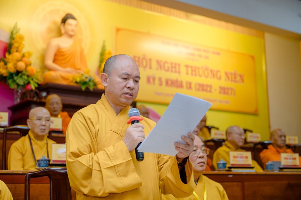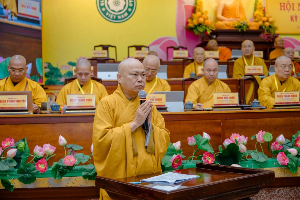 Tiếp đó, Thượng tọa Thích Thanh Tuấn – Phó Tổng Thư ký kiêm Chánh Văn phòng 1 Trung ương trình bày Đề án tổ chức Đại hội đại biểu Phật giáo toàn quốc lần thứ X, nhiệm kỳ 2026–2031.