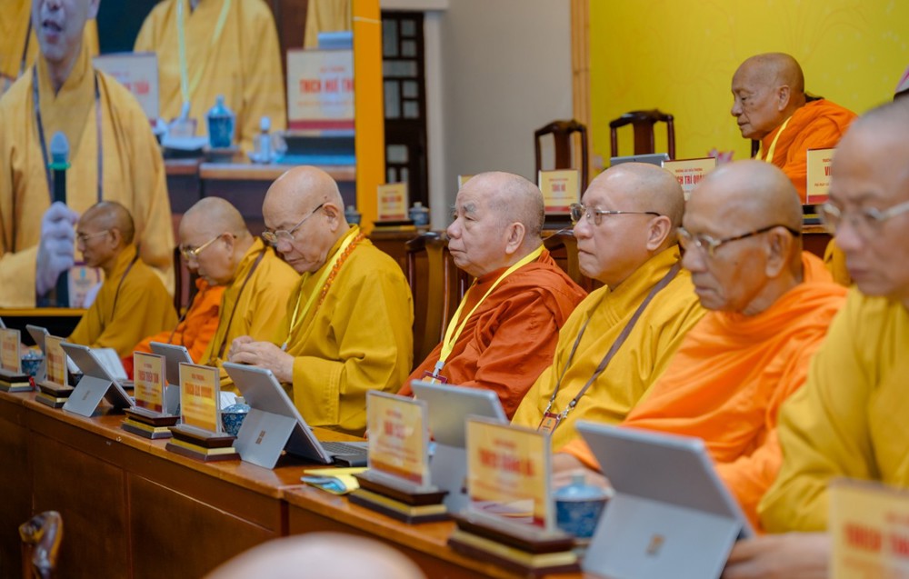 Tại phiên làm việc thứ III, Hòa thượng Thích Huệ Thông – Phó Chủ tịch Hội đồng Trị sự đã thay mặt Chủ tọa đoàn điều hành, tiếp nhận các ý kiến đóng góp của chư Tôn đức đại biểu đối với các văn kiện của Hội nghị.