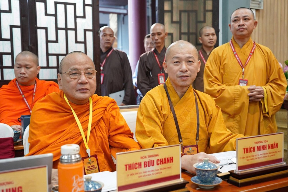 Mở đầu phiên làm việc, Thượng tọa Thích Minh Nhẫn – Ủy viên Thư ký Hội đồng Trị sự, Phó Chánh Văn phòng 2 Trung ương, báo cáo công tác của Ban Thường trực Hội đồng Trị sự trong việc hướng dẫn Ban Trị sự GHPGVN các tỉnh, thành phố tổ chức Đại hội Phật giáo các cấp theo Thông tư số 451 của Trung ương Giáo hội.