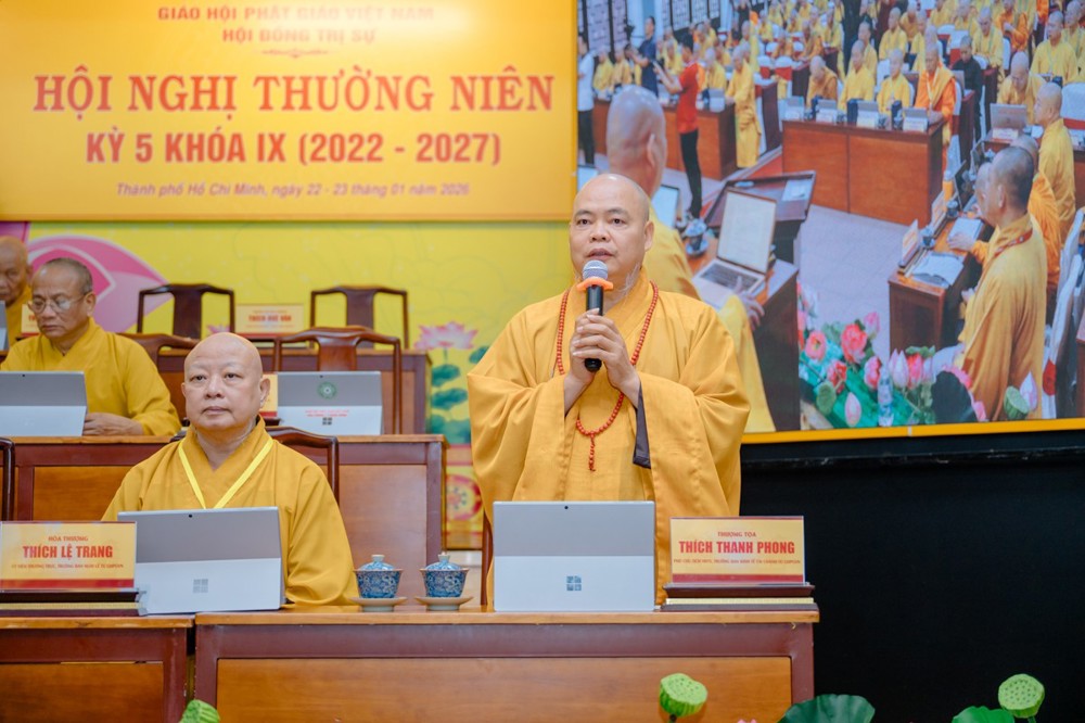Thượng tọa ghi nhận tinh thần trách nhiệm, sự thống nhất cao của chư Tôn đức đối với Báo cáo tổng kết công tác Phật sự năm 2025; đồng thời nhấn mạnh nhiệm vụ trọng tâm của năm 2026 là phát huy tinh thần đoàn kết, hòa hợp, tập trung trí tuệ để tổ chức thành công Đại hội Đại biểu Phật giáo các tỉnh, thành phố nhiệm kỳ 2026–2031, tiến tới Đại hội Đại biểu Phật giáo toàn quốc lần thứ X.