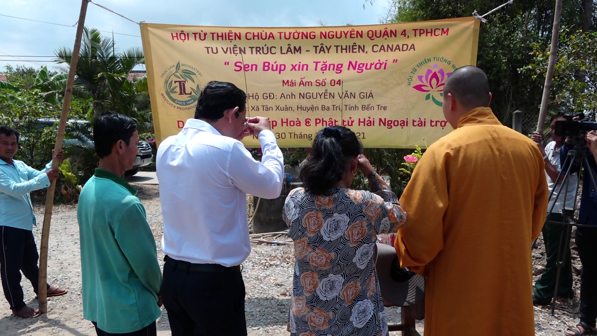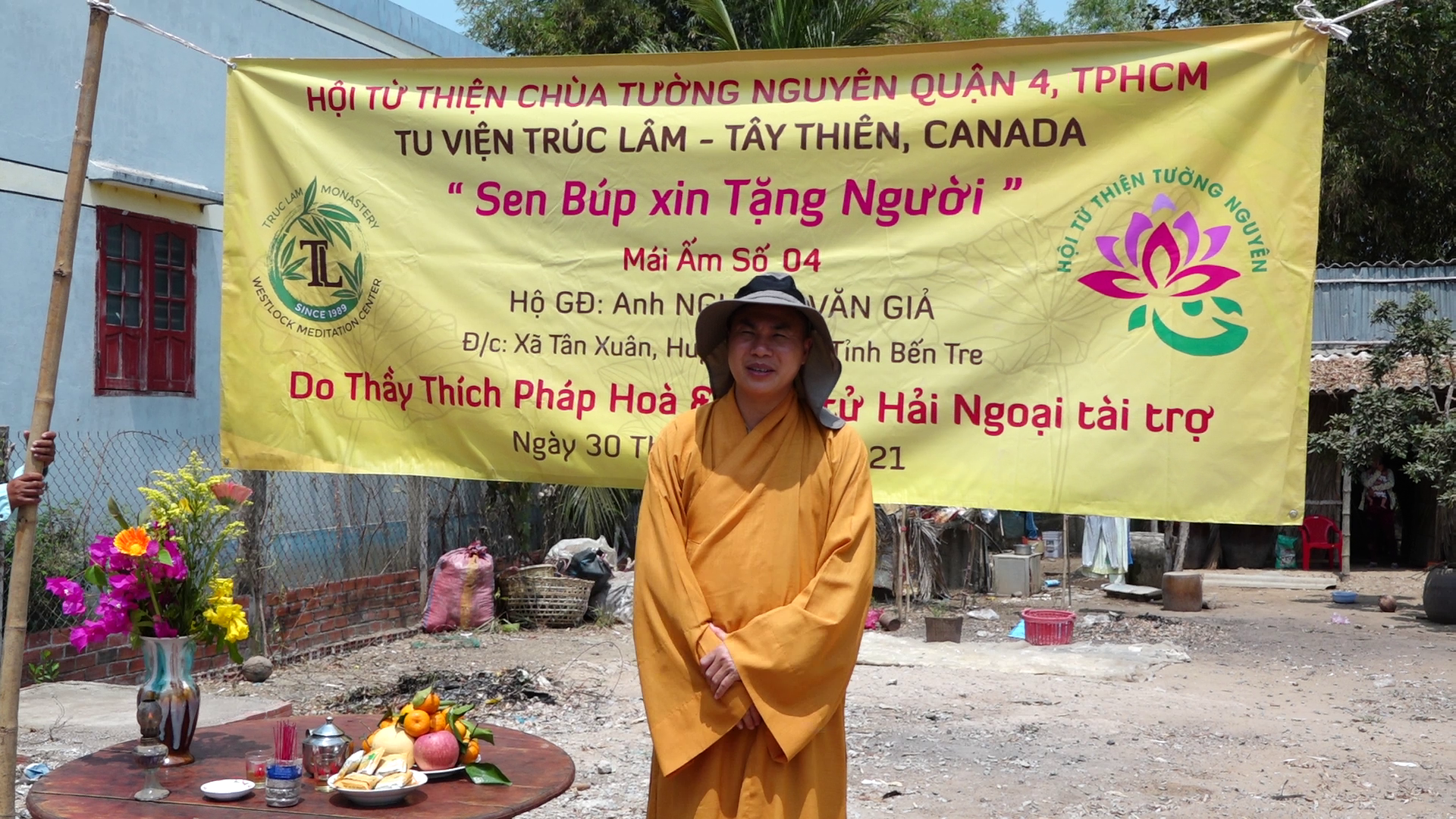 Được biết, lần này, đoàn đã đến khởi công 5 căn nhà trong số 50 căn nhà thuộc chuỗi chương trình xây dựng mái ấm tình thương mang tên “Sen Búp Tặng Người” do TT.Thích Pháp Hòa - Trụ trì chùa Trúc Lâm Tây Thiên và Phật tử hải ngoại tài trợ. Số lượng 50 căn nhà, lần lượt được xây dựng để giúp đỡ 50 gia đình có hoàn cảnh khó khăn về nhà ở tại các tỉnh miền tây: Bến Tre, An Giang, Kiên Giang, Trà Vinh, Sóc Trăng, Vĩnh Long, Tiền Giang.