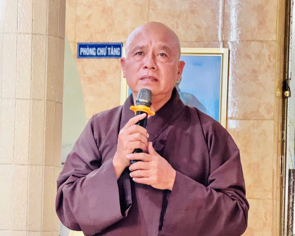 Tiếp theo, ĐĐ. Thích Giác Minh - Chánh Thư ký BTS GHPGVN huyện báo cáo Tăng sự của huyện và tuyên đọc thông tư của Hội đồng trị sự về việc dừng hoạt động BTS GHPGVN huyện.