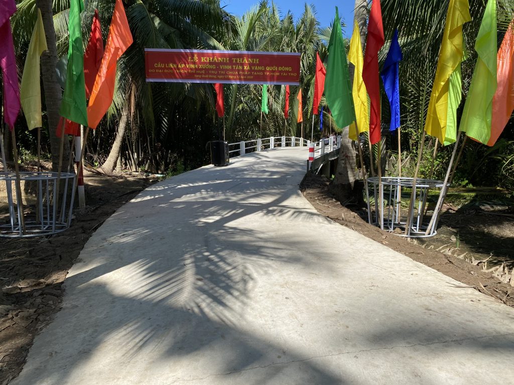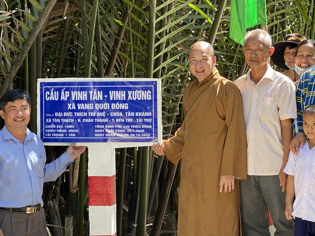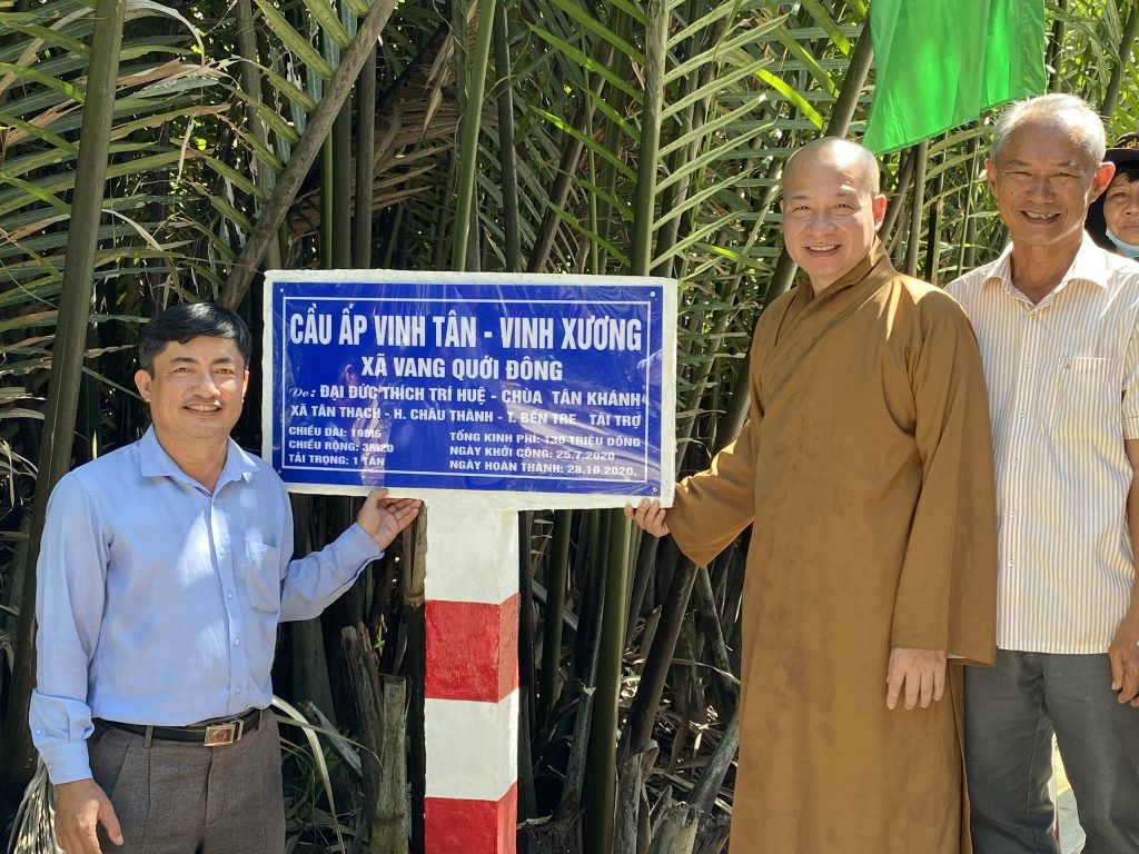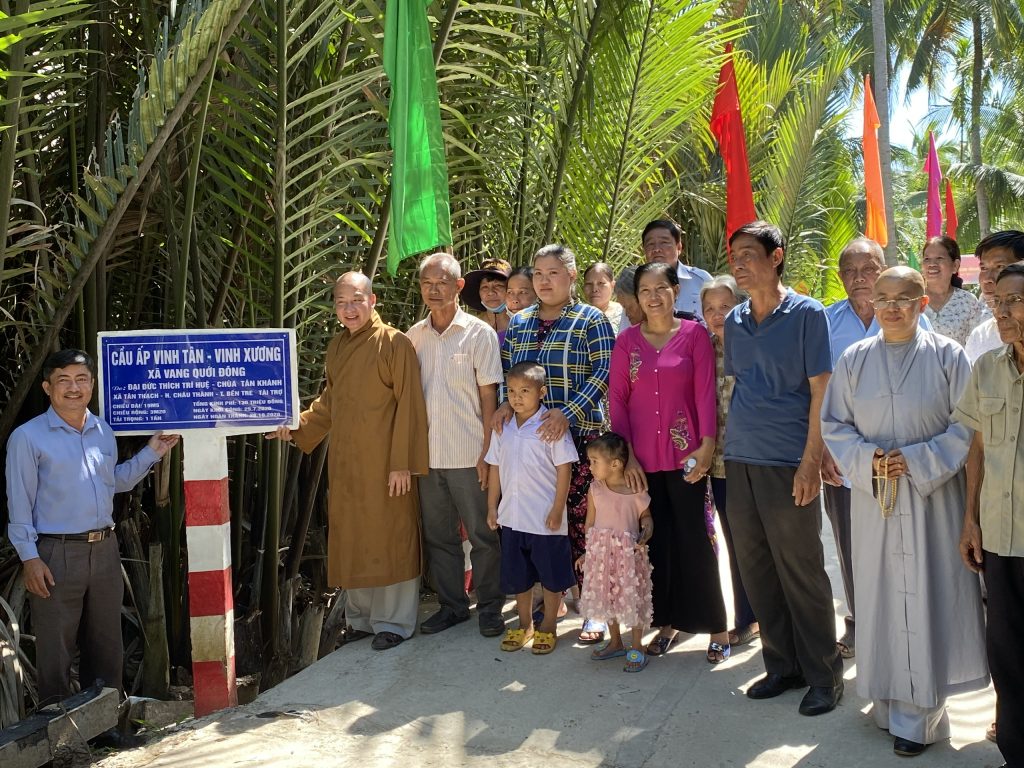 Nhằm động viên tinh thần bà con tăng gia lao động sản xuất và thuận tiện hơn trong cuộc sống, vào ngày 03/12/2020 Phân ban Từ thiện Đối ngoại và Quan hệ Quốc tế thuộc Ban Từ thiện Xã hội Trung ương GHPGVN đã thực hiện khánh thành cầu Giao thông nông thôn liên ấp Vinh Xương – Vinh Tân và trao tặng 02 mái ấm tình thương cho các hộ đặc biệt khó khăn trên địa bàn tỉnh Bến Tre.