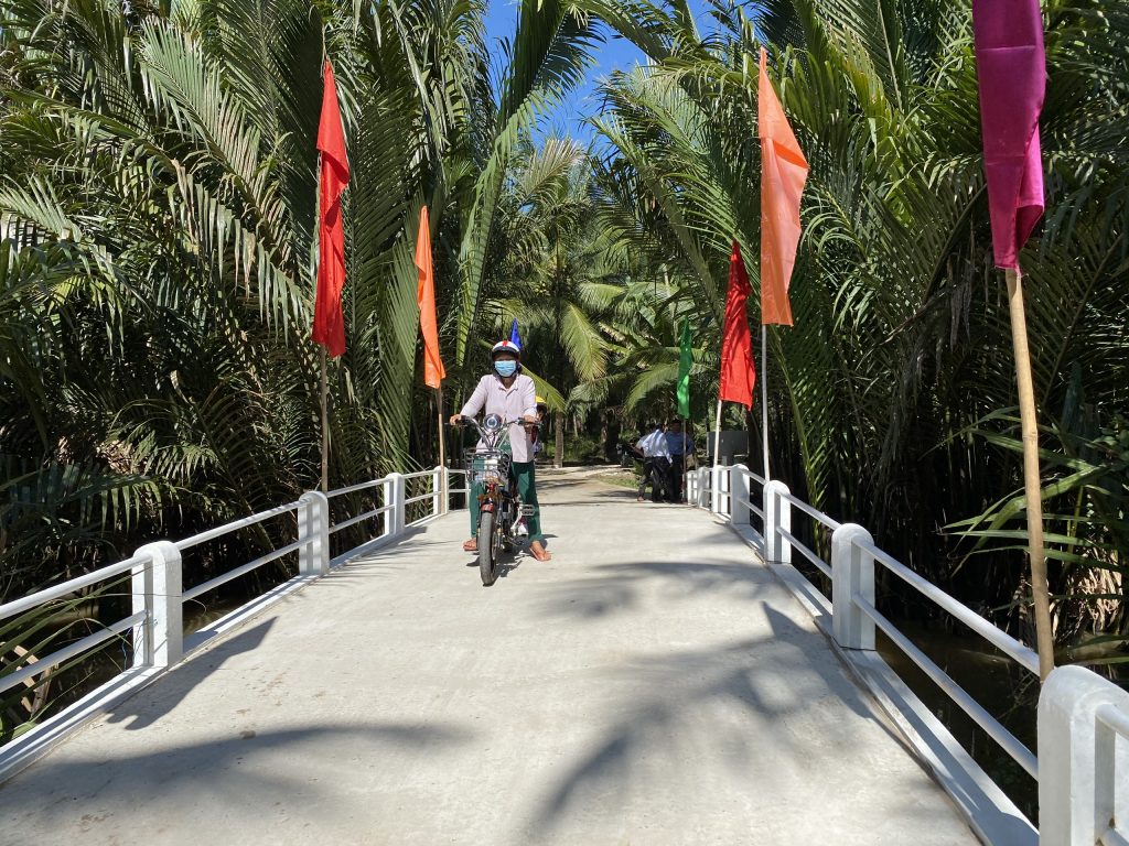 Sau thời gian khảo sát, tiến hành thi công, giờ đây, cây cầu nối liền các tuyến đường huyết mạch trong xã đã hoàn tất với chiều dài hơn 19 mét, chiều rộng hơn 3 mét thuận tiện cho các xe chở nông sản di chuyển, với tổng kinh phí là 160 triệu đồng. Đây là niềm mong ước của bà con và các em học sinh trong vùng. Đón chào đoàn từ thiện trở về, các em nhỏ vẫn còn lạ lẫm và chạy theo vui đùa sau xe ô tô khi thấy đoàn xe chạy ngang qua nhà.