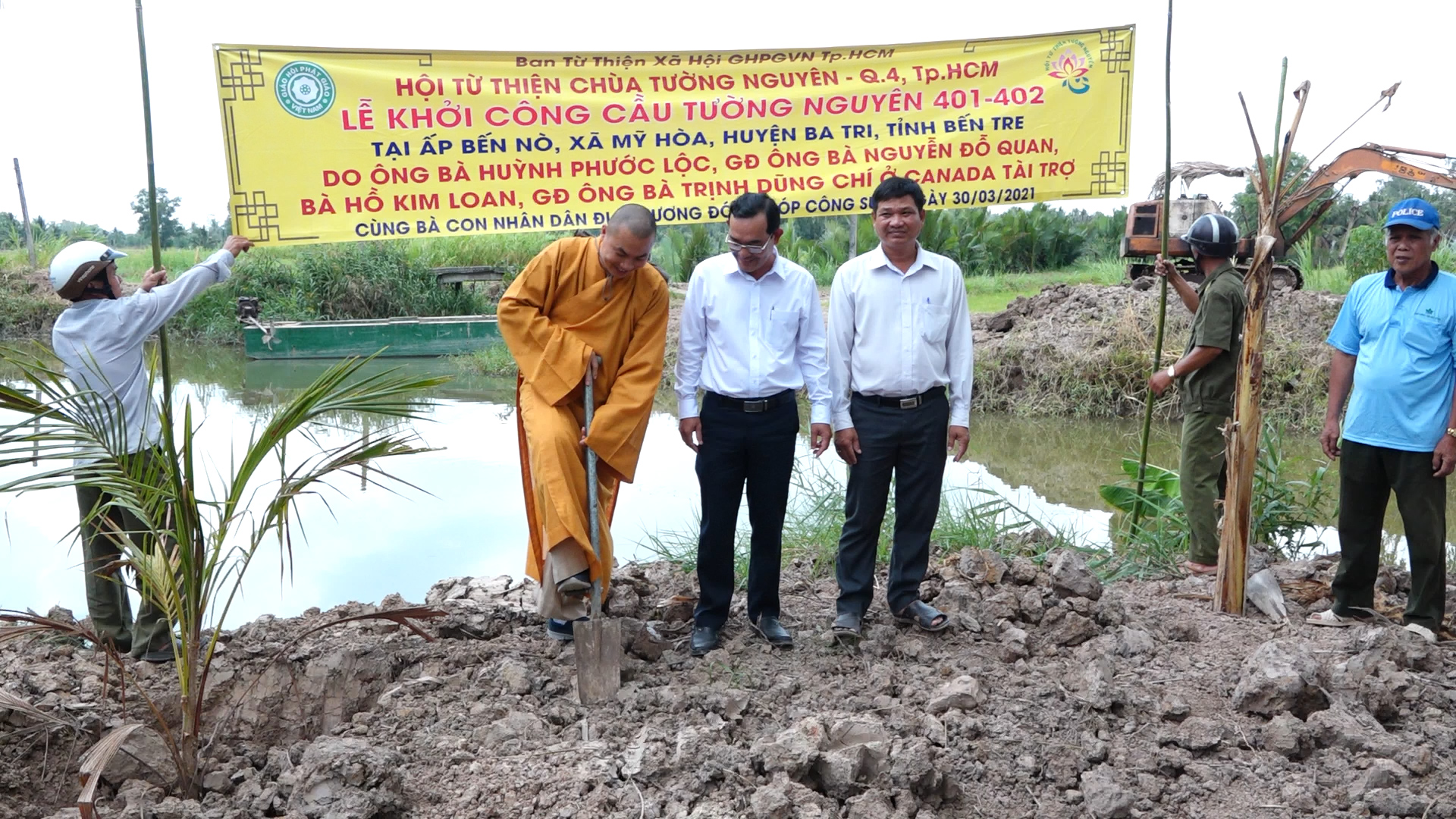 PSO - Với tinh thần tương thân tương ái và tinh thần từ bi của người con Phật, sáng ngày 30/3/2021 (nhằm ngày 18/2 năm Tân Sửu) Hội từ thiện Tường Nguyên đã làm lễ khởi công cầu số 401, 402 mang tên Tường Nguyên và trao tặng 95 áo quan cho bà con có hoàn cảnh khó khăn và không may mắn qua đời cho các tỉnh miền Tây và các xã thuộc huyện Ba Tri.