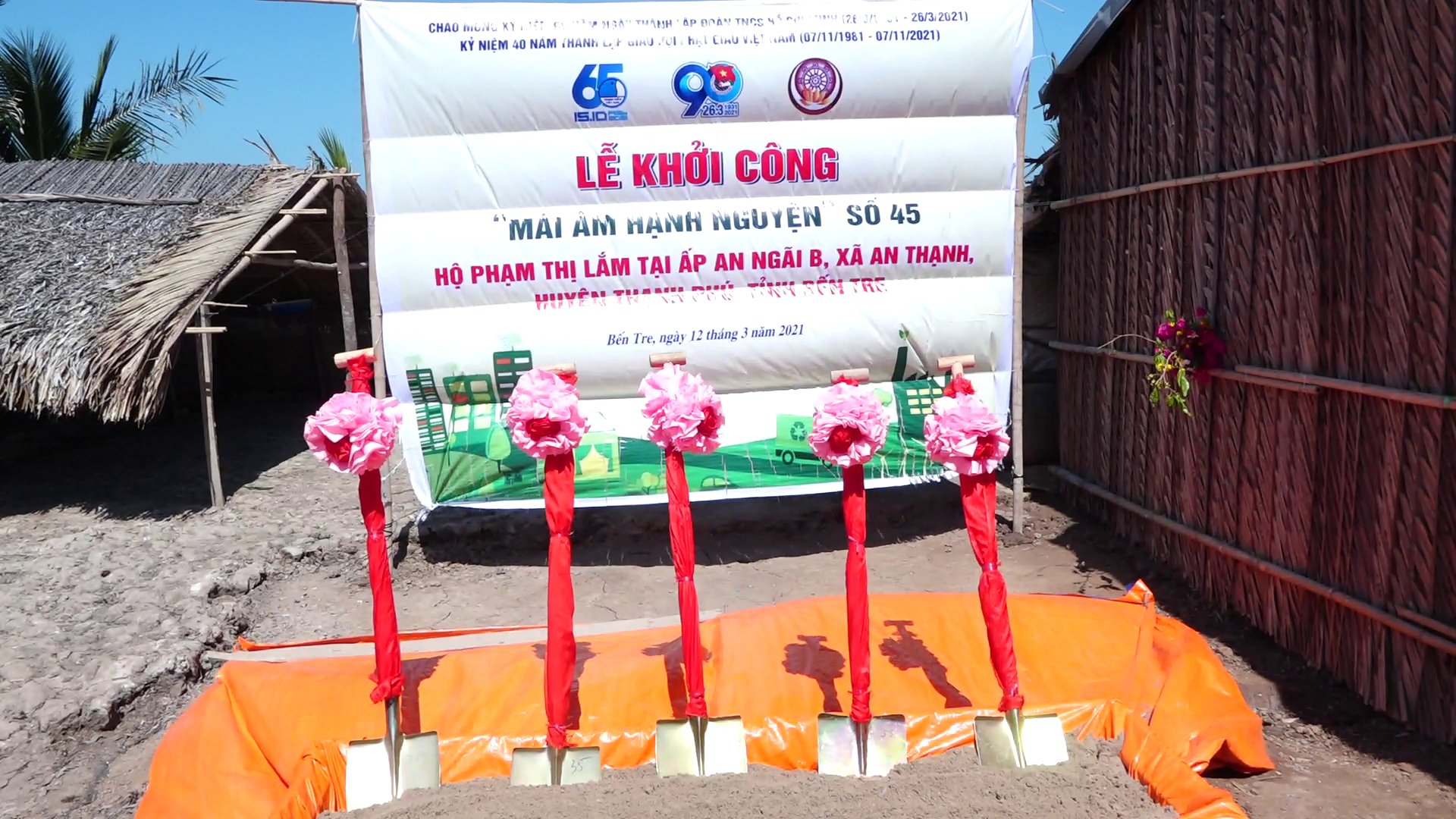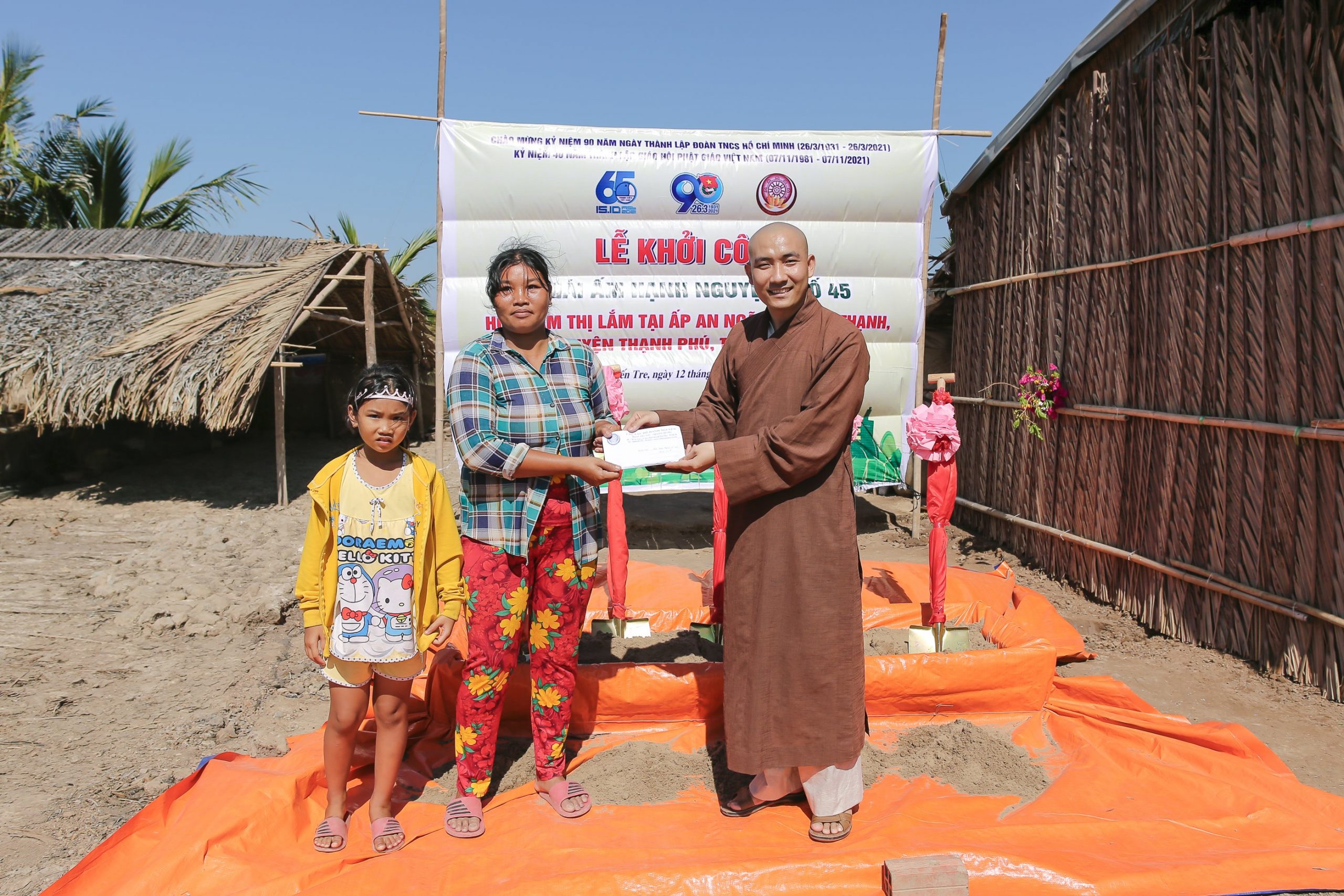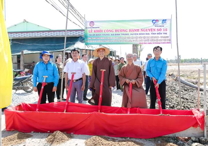 PSO - Nhằm thiết thực chào mừng kỷ niệm 40 năm thành lập GHPGVN, kỷ niệm 90 năm ngày thành lập đoàn TNCS Hồ Chí Minh, chào mừng thành công Đại hội đại biểu toàn quốc lần thứ XIII của Đảng và chào mừng Đại hội đại biểu Phật giáo huyện Bình Đại. Sáng ngày 12/3/2021 (nhằm ngày 29 tháng Giêng năm Tân Sửu), Câu lạc bộ Hạnh Nguyện kết hợp với Tỉnh đoàn tỉnh Bến Tre, đã khởi công xây dựng nhà tình thương 45 và tuyến đường hạnh nguyện số 15 tại xã Định Trung, huyện Bình Đại và xã An Thạnh, huyện Thạnh Phú thuộc tỉnh Bến Tre.