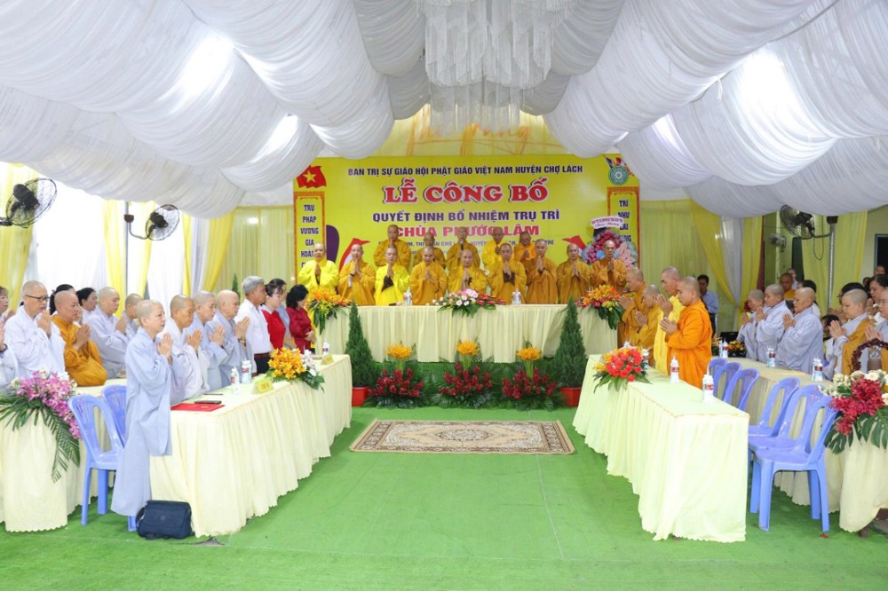 Tiếp đó NS. Thích nữ Như Nguyệt – Phó thư ký, Trưởng ban Kinh tế tài chính GHPGVN tỉnh đã tuyên đọc Quyết định bổ nhiệm trụ trì chùa Phước Lâm Số 235/QĐ - HĐTS do Ban Trị sự GHPGVN tỉnh ban hành. Nội dung Quyết định ghi nhận: căn cứ khoản 12 điều 38 chương VI Hiến chương GHPGVN, xét tờ trình số 19/TTr – BTS của BTS GHPGVN huyện Chợ Lách và công văn chấp thuận số 2537/SNV – TG&DT Sở nội vụ tỉnh Bến Tre - Nay chính thức bổ nhiệm SC. Thích Nữ Long Thiền đảm nhiệm chức vụ trụ trì chùa Phước Lâm.