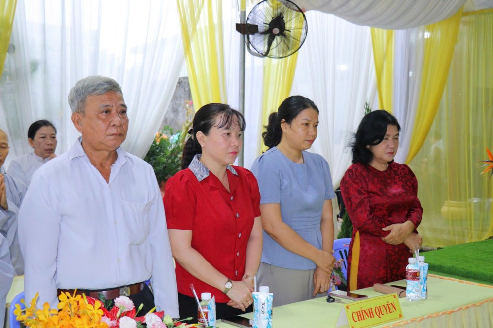 Về phía Chư Tôn đức Ni: NS. Thích Nữ Như Nguyệt – Phó thư ký, Trưởng ban Kinh tế tài chính GHPGVN tỉnh; NS. Thích Nữ Long Viên – UV BTS PG tỉnh, Phó PBNG PG tỉnh; NS. Thích Nữ Như Phước – Phó BTS kiêm Trưởng PBNG PG huyện; Cùng Chư Tôn đức Tăng Ni Thường trực BTS GHPGVN tỉnh, Chư Tôn đức Tăng Ni Thường trực BTS GHPGVN huyện, Chư Tôn Đức Tăng Ni trụ trì các tự viện các huyện, thành phố; quý nam nữ Phật tử gần xa đồng về tham dự buổi lễ.