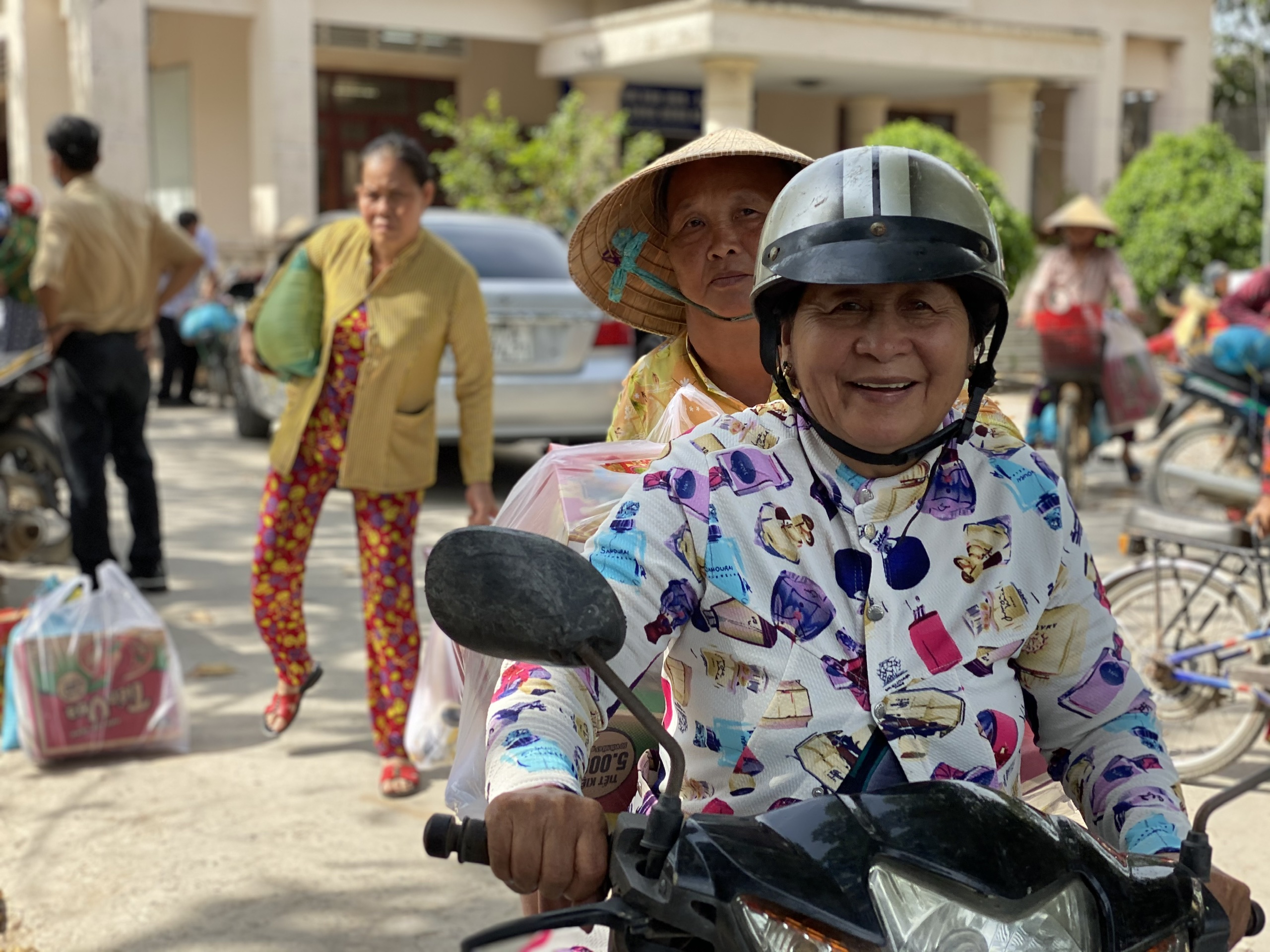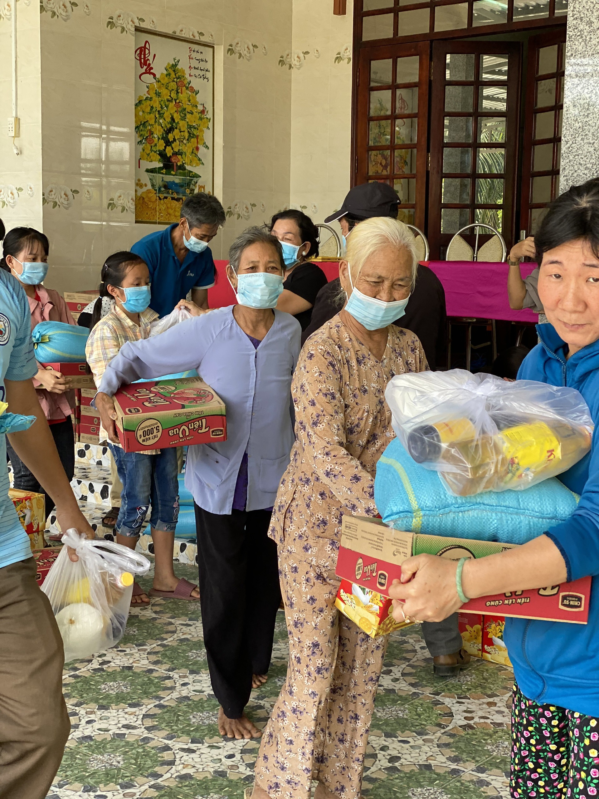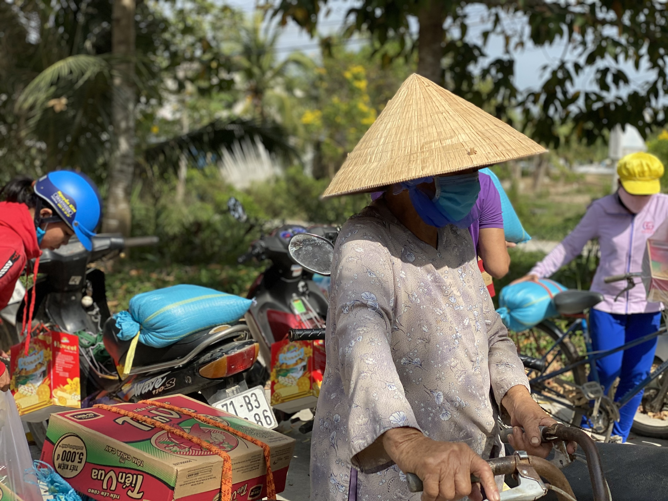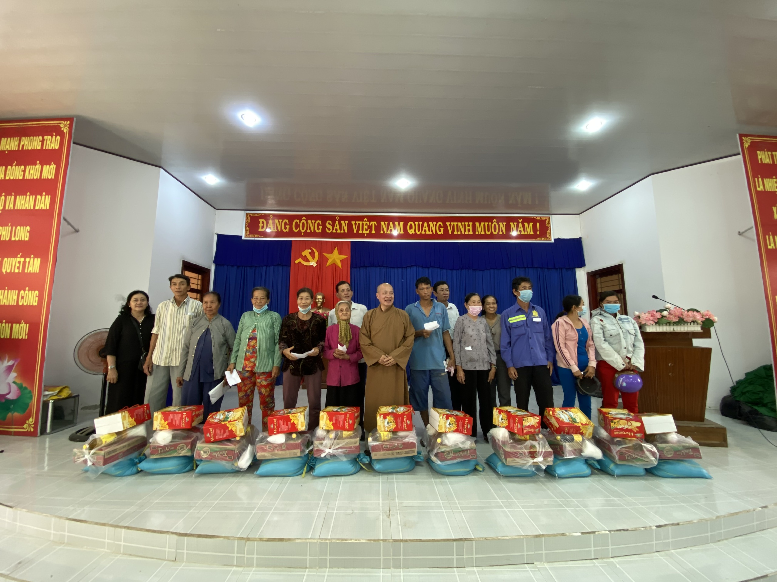 Tấm lòng của đoàn từ thiện đã được bà con khó khăn hân hoan đón nhận. Niềm vui nối tiếp niềm vui, phái đoàn tiếp tục di chuyển đến xã Phú Long, huyện Bình Đại để trao gửi tiếp những món quà yêu thương đến bà con.