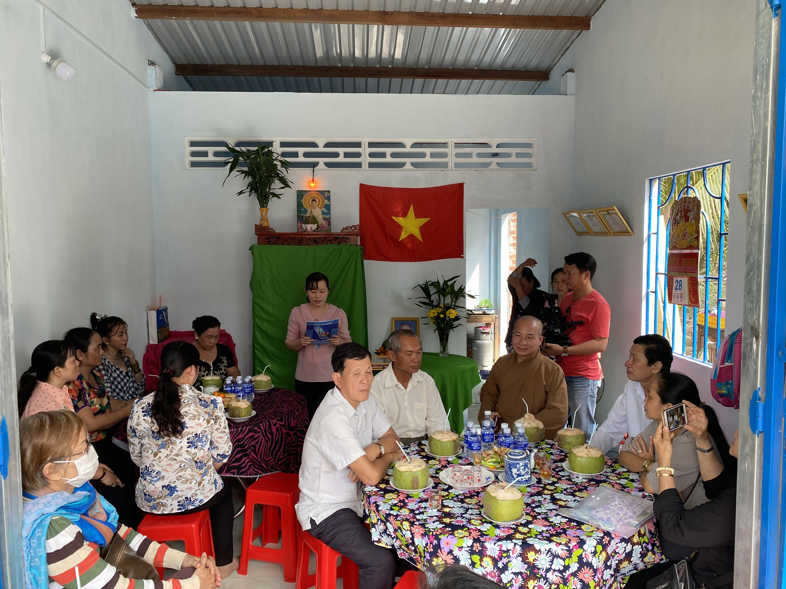 Trước khi kết thúc chương trình, phái đoàn đến bàn giao mái ấm tình thương thứ 1.000 cho hộ gia đình chị Nguyễn Thị Kim Oanh tại xã Phú Vang, huyện Bình Đại.