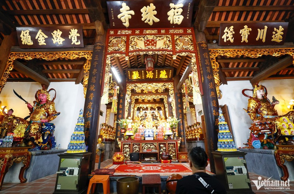 Trong chùa có 48 pho tượng lớn nhỏ, gồm 3 pho tượng mẫu, 5 pho tượng tổ và 40 pho tượng Phật sơn son thếp vàng thuộc các thế kỷ 18, 19, 20.