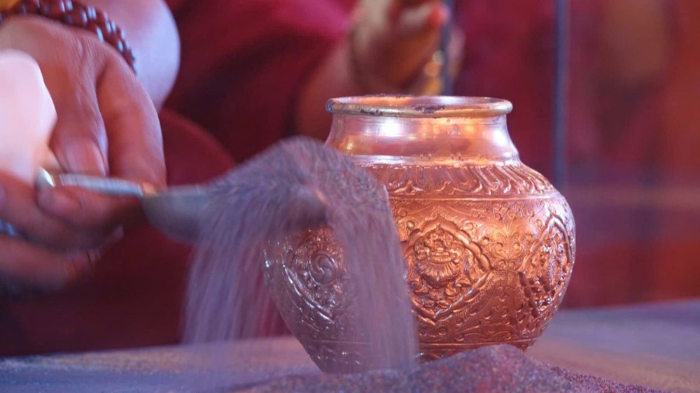 Bốn vị Tăng sĩ thuộc Tu viện Trung ương Bhutan đã dành 8 ngày để kiến tạo Mandala tinh xảo bằng cát nhiều màu sắc, thể hiện sự chuyên chú, chánh niệm và công phu tỉ mỉ. Sau khi hoàn tất các nghi lễ, toàn bộ cát màu được thả xuống dòng sông Wang Chhu gần Công viên Changyul, như một pháp hành thanh tẩy, đồng thời nhấn mạnh giáo lý vô thường qua sự tan hòa của mandala vào thiên nhiên.