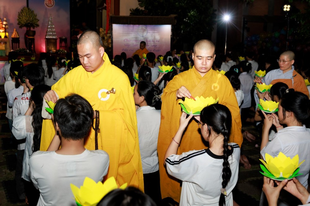 Hàng trăm ngọn nến lung linh được thắp lên cùng với những câu kinh, những lời ước nguyện và lời động viên từ chư tôn đức đến thí sinh để các em có tâm lý vững vàng trước khi bước vào kỳ thi quan trọng.