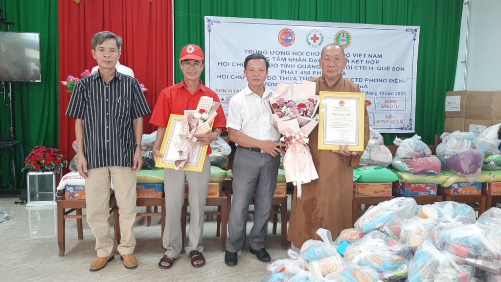 Chiều cùng ngày, đoàn từ Thiện đến xã Điền Hải, huyện Phong Điền phát 450 phần quà cho học sinh con em dân nghèo vùng lũ lụt, tham dự có ông Hoàng Đức Linh - Chủ tịch Hội CTĐ huyện Phong Điền.