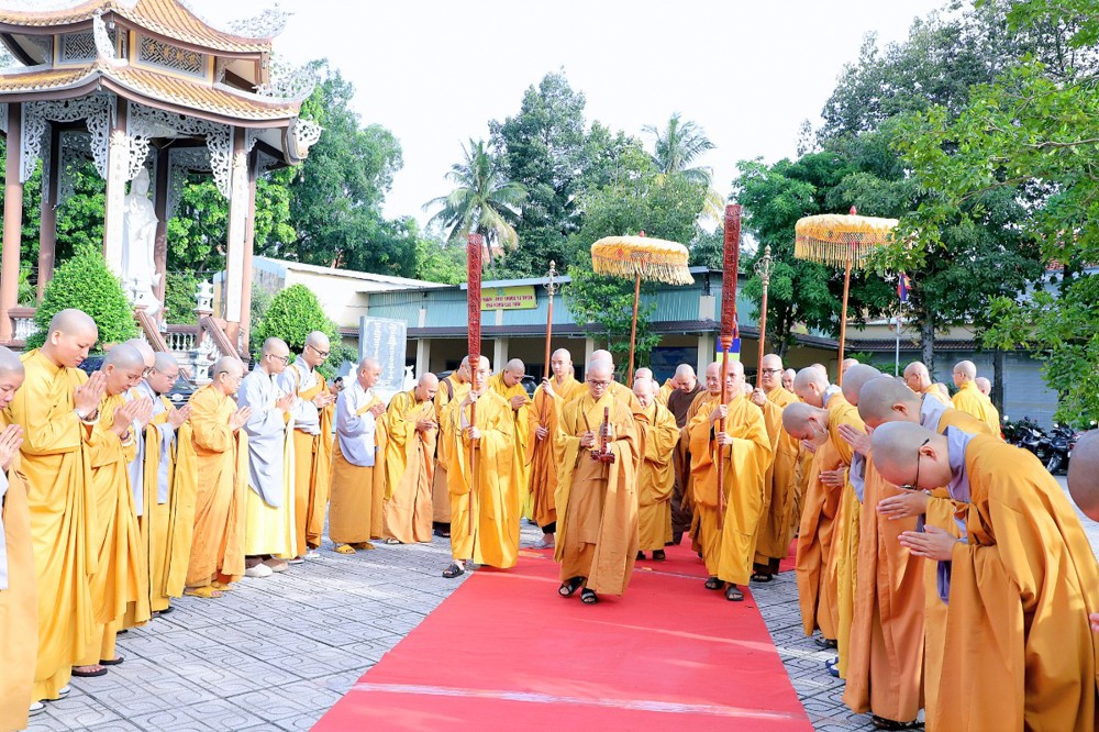 Quang lâm chứng minh kỳ bố tát có: Trưởng lão Hòa thượng Thích Thiện Nhơn – Phó Pháp chủ Hội đồng Chứng minh, Chủ tịch Hội đồng Trị sự GHPGVN; Hòa thượng Thích Huệ Thông – Phó Chủ tịch HĐTS, Trưởng ban Pháp chế Trung ương, Trưởng ban Trị sự GHPG Việt Nam tỉnh Bình Dương, Trưởng ban Tổ chức Khóa An cư Kiết hạ; HT. Thích Nhuận Kiên, HT. Thích Chí Thiện; HT. Thích Thường Quang - đồng Chứng minh Ban Trị sự GHPGVN tỉnh Bình Dương; HT. Thích Minh Nghĩa – Cố vấn Ban Trị sự GHPGVN tỉnh; Hòa thượng Thích Thiện Duyên – Ủy viên HĐTS, Phó ban Thường trực BTS Phật giáo tỉnh; TT. Thích Chơn Phát - Uỷ viên HĐTS, Phó ban Trị sự kiêm Trưởng ban Giáo dục Phật giáo tỉnh; TT. Thích Minh Vũ - Phó ban Trị sự, Trưởng ban Hoằng pháp PG tỉnh; TT. Thích Minh Lực – Phó ban Trị sự, Trưởng ban Phật giáo Quốc tế GHPGVN tỉnh; ĐĐ. Thích Thiện Hưng - Phó ban Trị sự, Trưởng ban Thông tin Truyền thông PG tỉnh; TT. Thích Huệ Tín, TT. Thích Tĩnh Tại – đồng Phó ban Trị sự GHPGVN tỉnh; Ni trưởng Thích nữ Pháp Như – Phó ban Trị sự, Trưởng Phân ban Ni giới GHPGVN tỉnh; Ni sư Thích nữ Từ Thảo – Ủy viên HĐTS, Phó trưởng Phân ban kiêm Trưởng ban Pháp chế Phân ban Ni giới T.Ư, Phó BTS kiêm Trưởng ban Kinh tế Tài chánh GHPGVN tỉnh; ĐĐ. Thích Đức Dũng - Chánh Thư ký Ban Trị sự Phật giáo tỉnh; ĐĐ. Thích Huệ Nghiêm – Phó Thư ký kiêm Chánh Văn phòng Ban Trị sự Phật giáo tỉnh; ĐĐ. Thích Huệ Nhật – Phó Thư ký kiêm Phó Văn phòng Ban Trị sự Phật giáo tỉnh; cùng chư Tôn đức Ban Trị sự 09 huyện, thị, thành phố, chư Tăng Ni trụ trì các cơ sở tự viện và hơn 700 hành giả an cư đồng tham dự.