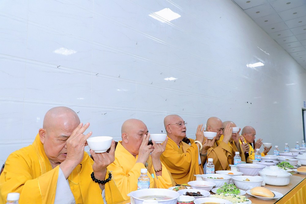 Chư Tôn đức thực hiện nghi thức quá đường trong sự trang nghiêm và thanh tịnh.