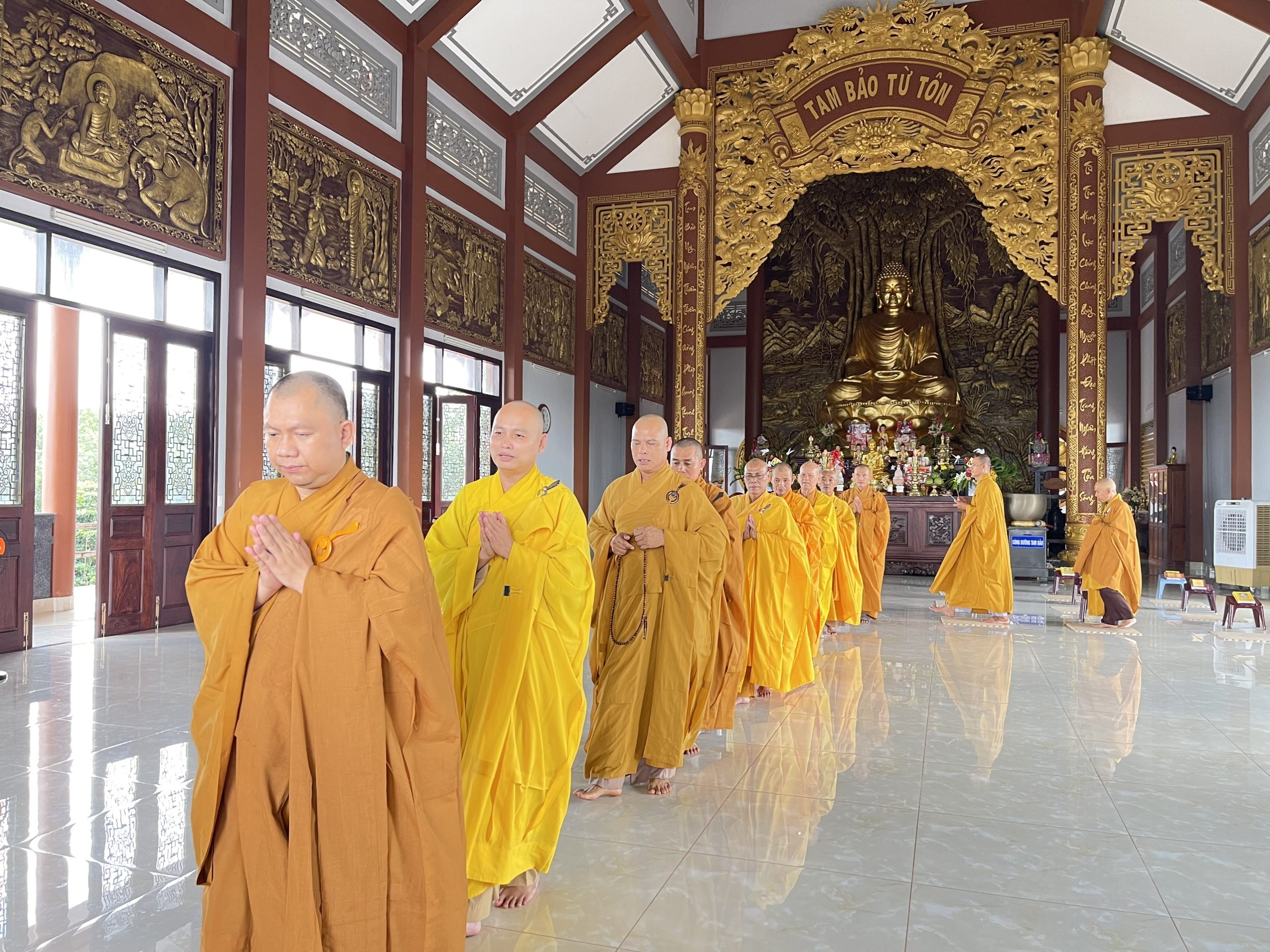 Sau phần nghi thức quả đường là những bước thiền hành niệm Phật của chư Tôn đức hành giả tại chánh điện chùa Tỉnh Hội.