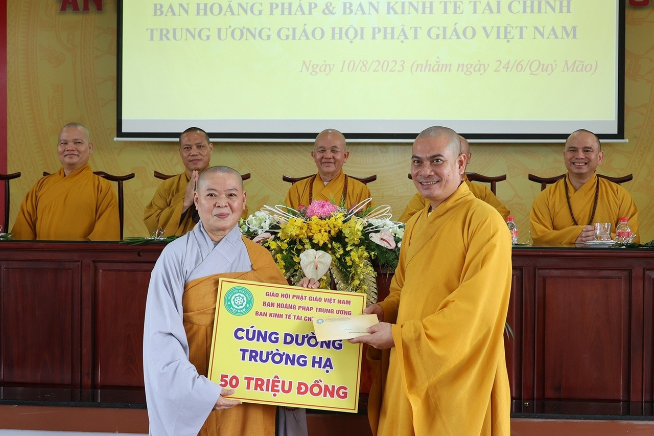 Phái đoàn do: HT. Thích Minh Thiện - Ủy viên HĐTS, Phó Trưởng BHP TƯ làm trưởng đoàn; đi cùng đoàn có TT. Thích Trí Chơn - Uỷ viên HĐTS, Phó trưởng BHP TƯ; TT. Thích Chiếu Khánh - Uỷ viên BHP TƯ; ĐĐ. Thích Lệ Ngôn - Ủy viên BHP TƯ, Phó Trưởng ban BTS, Trưởng BHP tỉnh Long An; TT. Thích Thiện Tuệ - Ủy viên BHP TƯ; NS. Thích Nữ Huệ Tuyến – Uỷ viên HĐTS; Phó trưởng PBNG TƯ, Phó Ban KTTCTƯ; cùng chư Tôn đức Tăng, Ni BHP và Ban KTTC TƯ đồng tham dự.