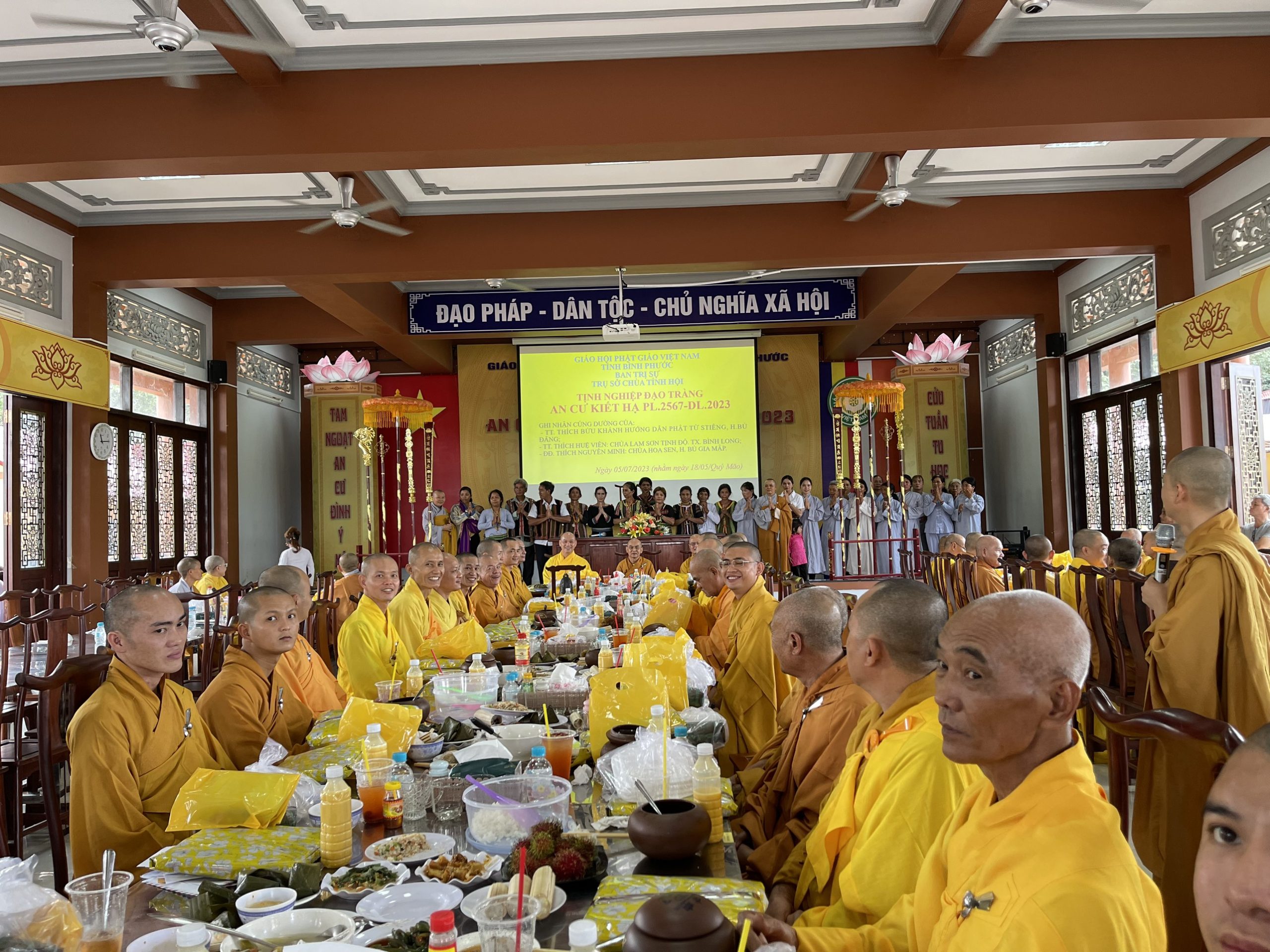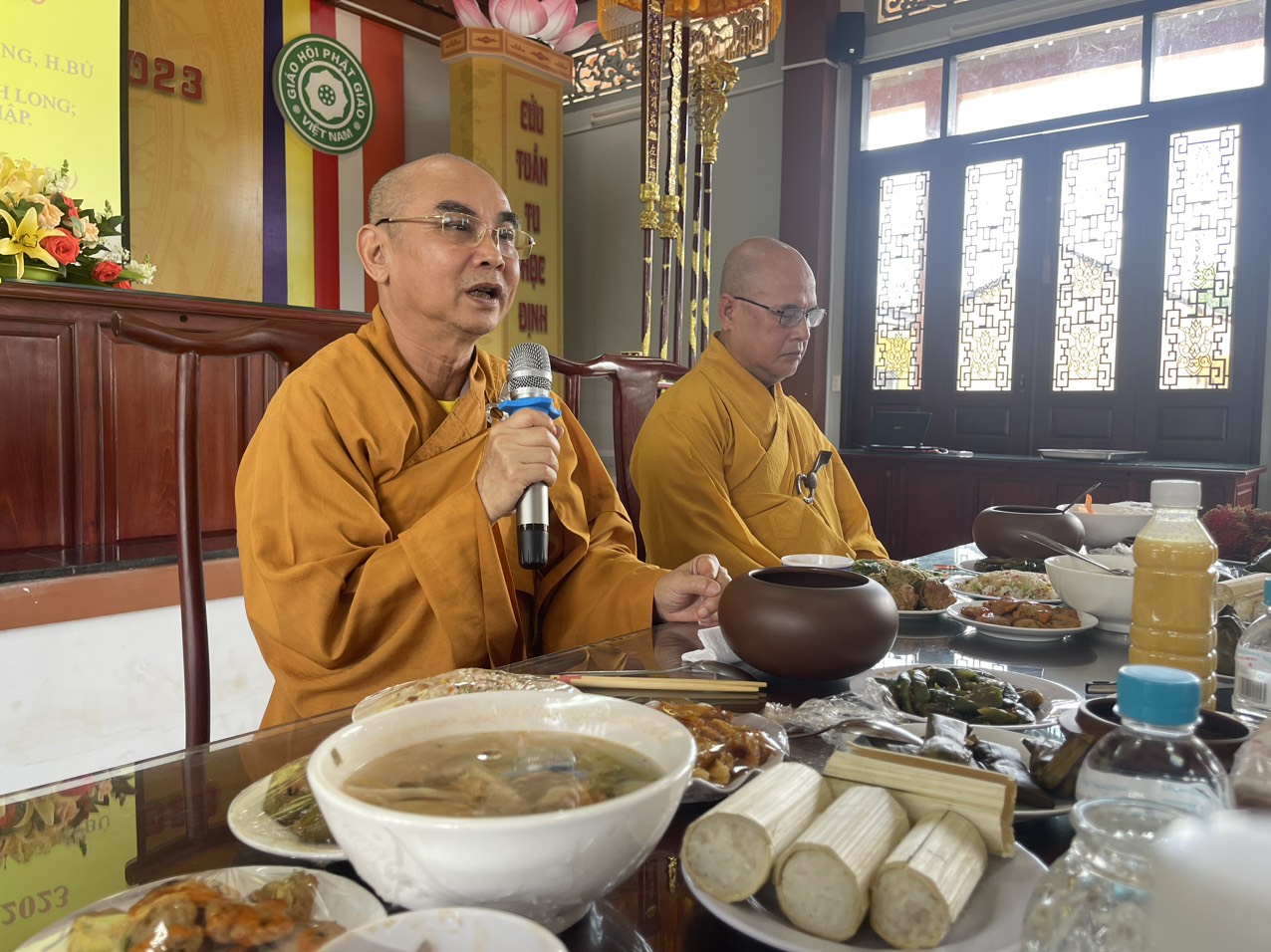 Tại buổi lễ, Thượng toạ Thích Tỉnh Cường, Uỷ viên HĐTS, Phó trưởng Ban Thường trực Ban Trị sự GHPGVN tỉnh, Thiền chủ hạ trường đã thay mặt toàn thể hành giả an cư tại hạ trường có lời tán thán đến quý Phật tử người đồng bào. Thượng toạ chia sẻ, quý vị khó khăn mà biết nghe theo sự chỉ dạy của Thầy tổ, biết phát tâm cúng dường để chuyển hoá nghiệp của mình, đây là việc làm vô cùng khó. Một lần nữa xin tán dương và cầu nguyện Tam Bảo gia hộ cho quý vị cùng gia quyến thân tâm an lạc, vạn sự hanh thông, kiết tường như ý.