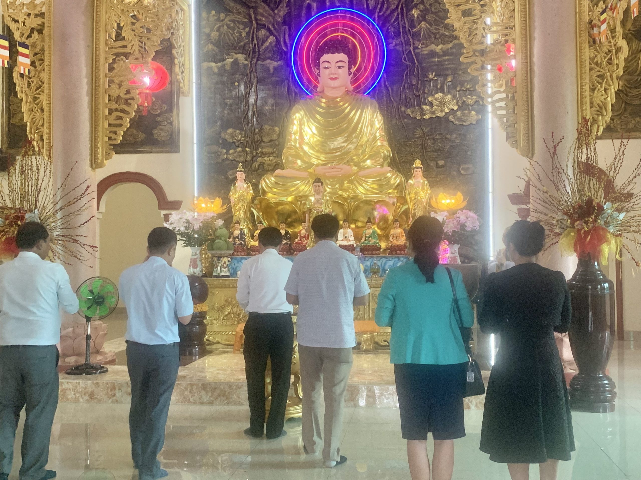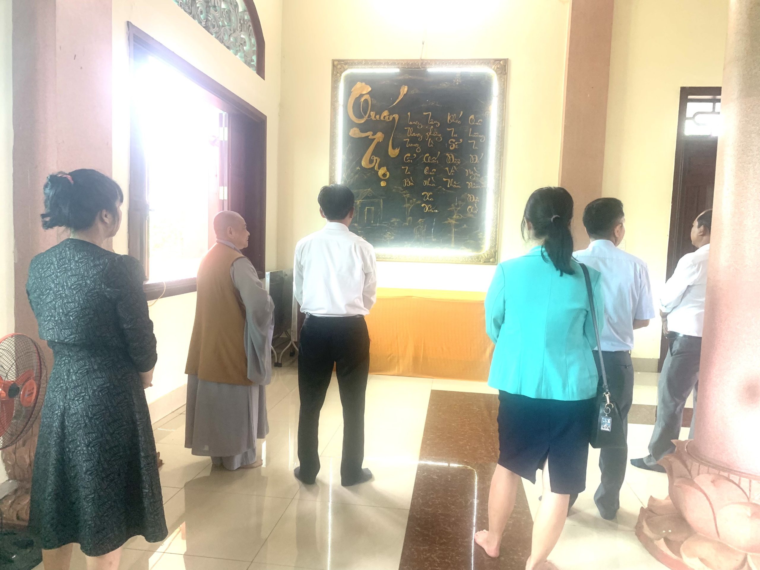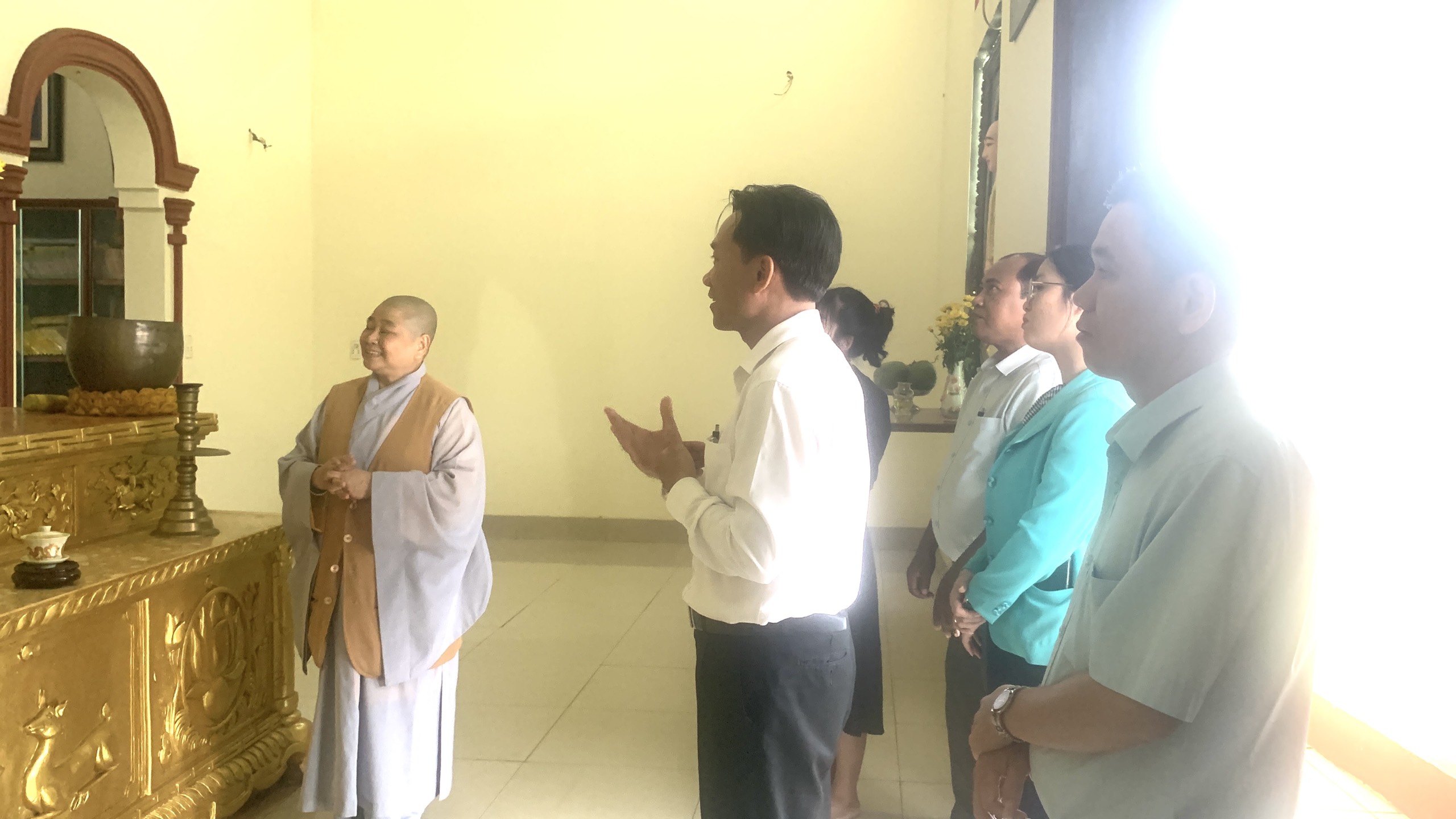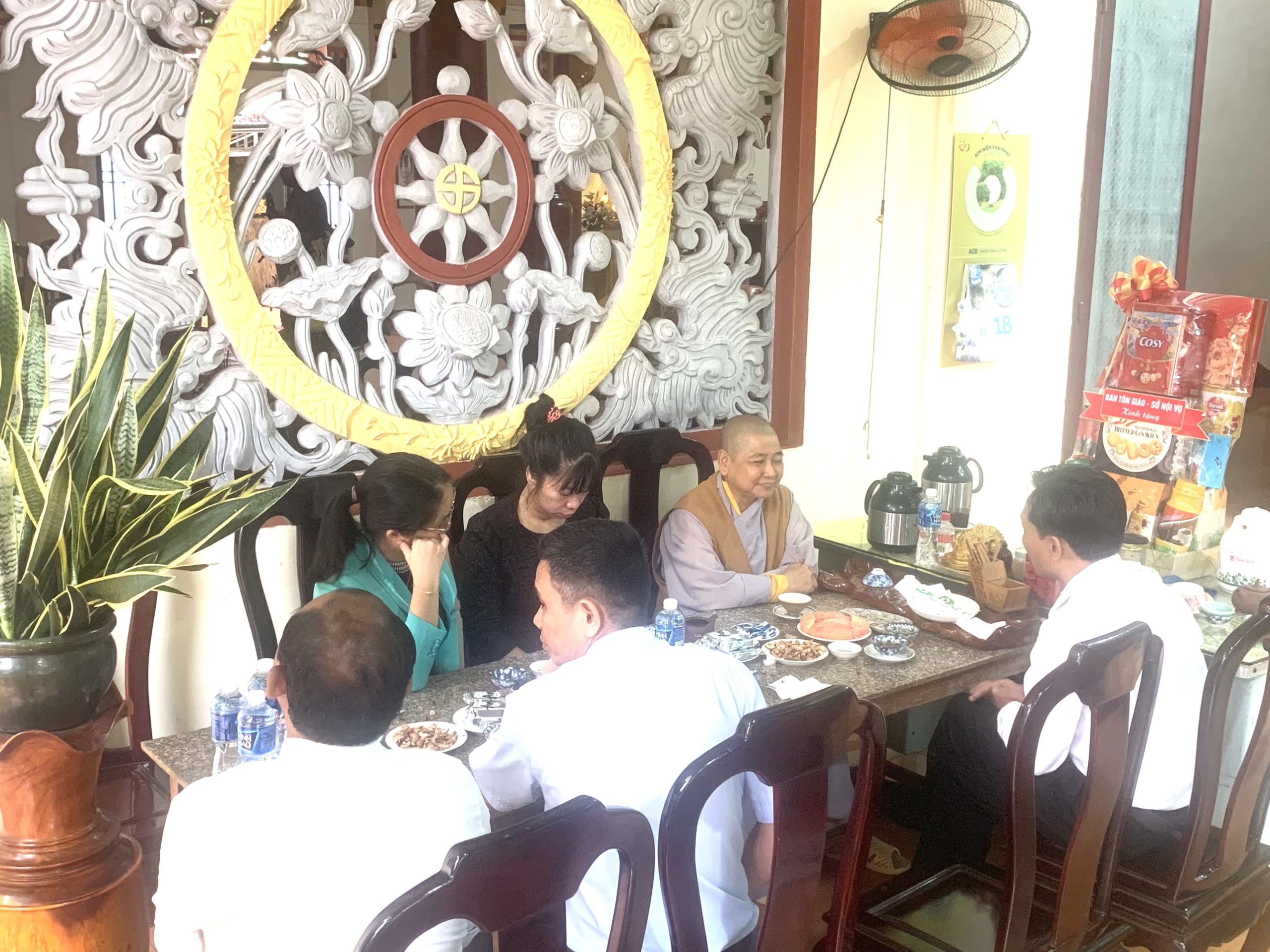 Tiếp đoàn có Ni sư Thích Nữ Như Hiếu - Uỷ viên BTS tỉnh Bình Phước, trụ trì chùa Từ Quang.