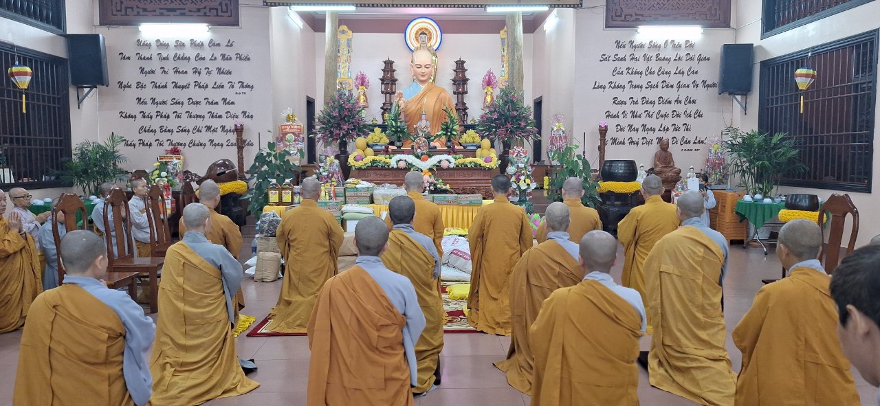 PSO - Nhân mùa An cư kiết hạ PL.2567, sáng ngày 30/07, dưới sự chỉ đạo của TT.Thích Đồng Tấn - Phó Ban Trị sự GHPGVN tỉnh, Trưởng Ban Trị sự GHPGVN huyện Bù Đăng; Tăng Ni Phật giáo huyện đã tổ chức cúng dường trường hạ Ni chùa Quang Minh, phường Tân Đồng và trường hạ Tăng chùa Tỉnh Hội, phường Tân thiện, TP. Đồng Xoài, tỉnh Bình Phước.