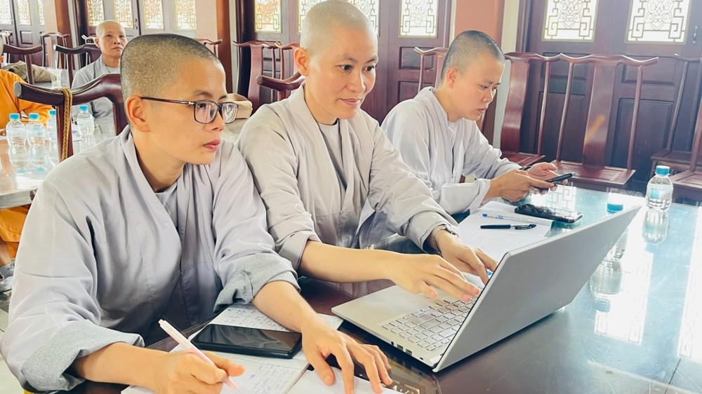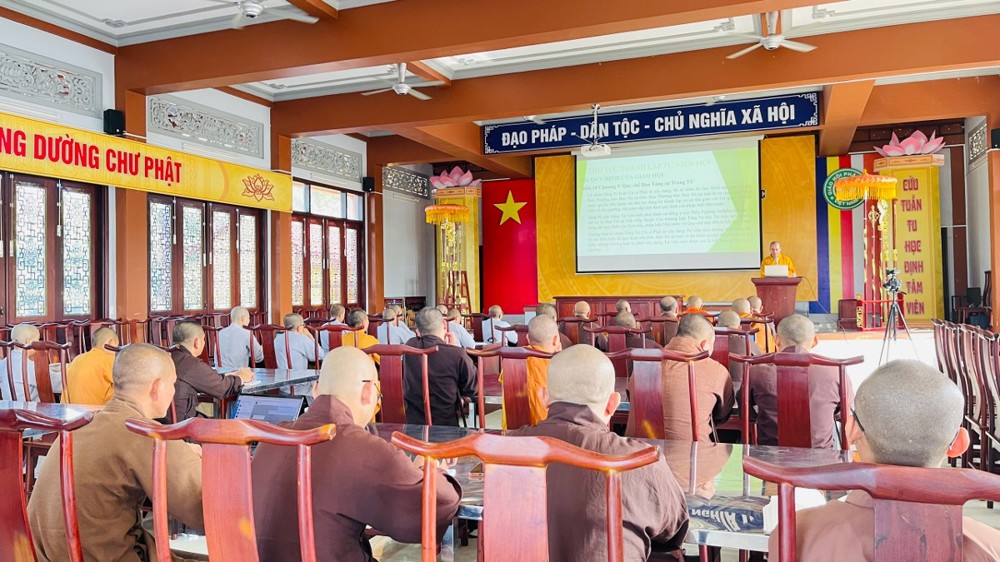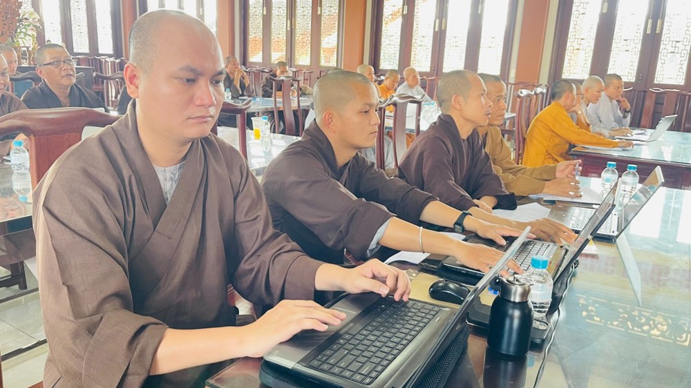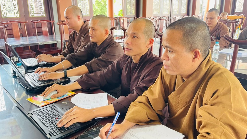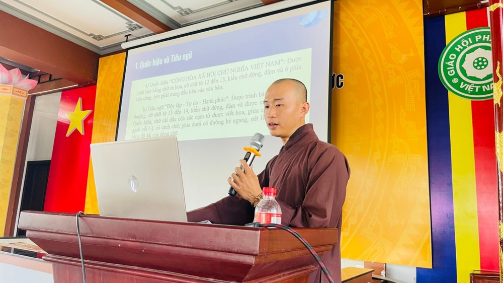 Chiều cùng ngày, ĐĐ. Thích Thạnh Thông - Thạc sĩ Công nghệ thông tin, Chuyên viên Văn phòng BTS GHPGVN tỉnh chia sẻ đề tài kỹ năng tin học trong soạn thảo văn bản hành chính Giáo hội; giới thiệu thể thức và quy cách trình bày một số mẫu văn bản hành chính theo Nghị định số: 30/2020/NĐ-CP, ngày 05 tháng 3 năm 2020 của Chính Phủ về công tác văn thư.