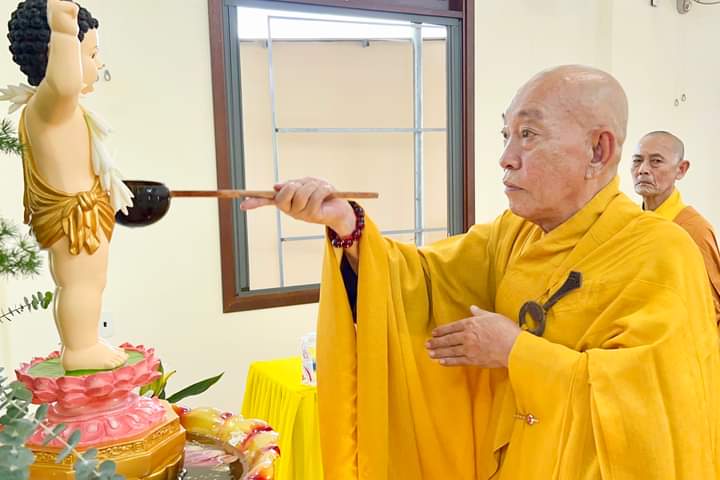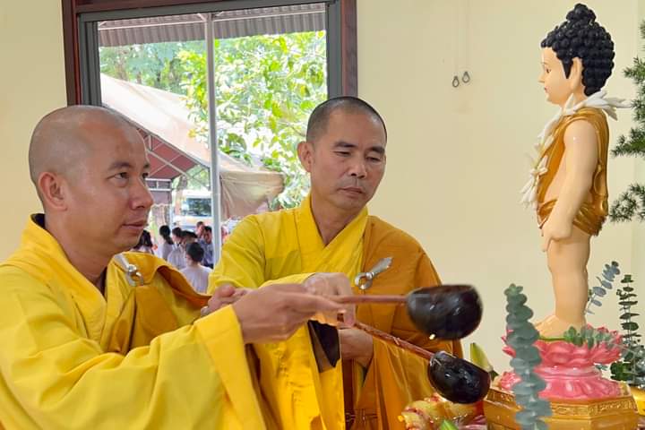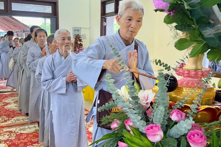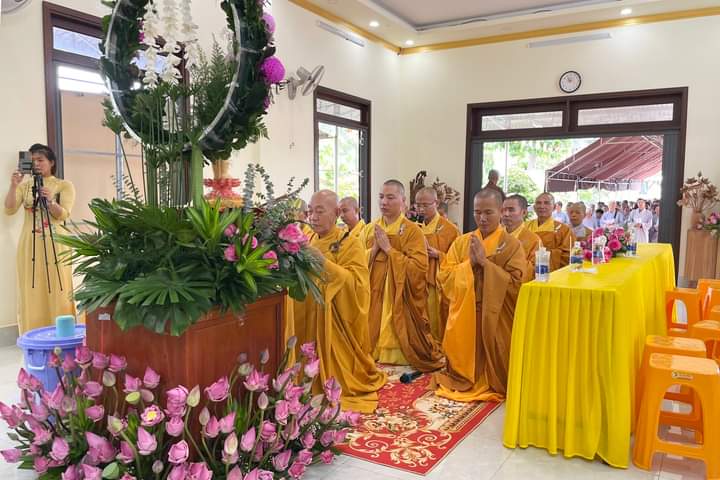 Sau thời pháp thoại, đại chúng đồng trang nghiêm cung nghinh chư Tôn đức quang lâm đạo tràng, cử hành nghi thức khánh đản.