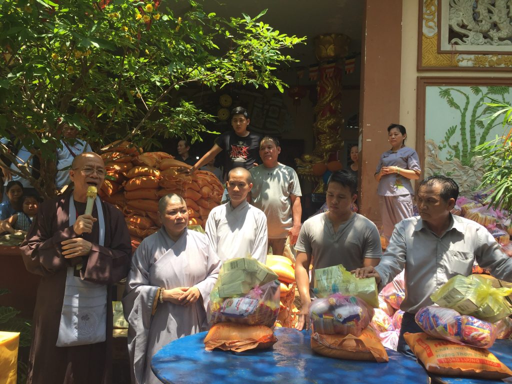 Dịp này HT. Thích Viên Minh đã hướng dẫn gia đình Bảo Quy tại TP HCM về huyện Lộc Ninh tặng 350 phần quà cho người nghèo, khiếm thị và chất độc mầu da cam tại địa phương. Mỗi phần quà trị giá 250 ngàn đồng.