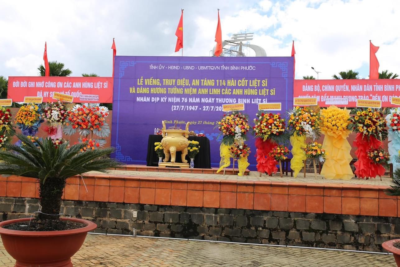 Chiều ngày 26/07/2023, Ban Trị sự GHPGVN tỉnh phối hợp với UBMTTQVN tỉnh, Bộ Chỉ huy Quân sự tỉnh cũng tổ chức Đại lễ cầu siêu tưởng niệm và tri ân các Anh hùng liệt sĩ – Đồng bào các dân tộc trên địa bàn tỉnh hy sinh vì sự nghiệp bảo vệ tổ quốc nhân kỷ niệm 76 năm ngày Thương binh liệt sĩ (27/07/1947 - 27/07/2023) tại Nghĩa trang liệt sĩ tỉnh Bình Phước.
