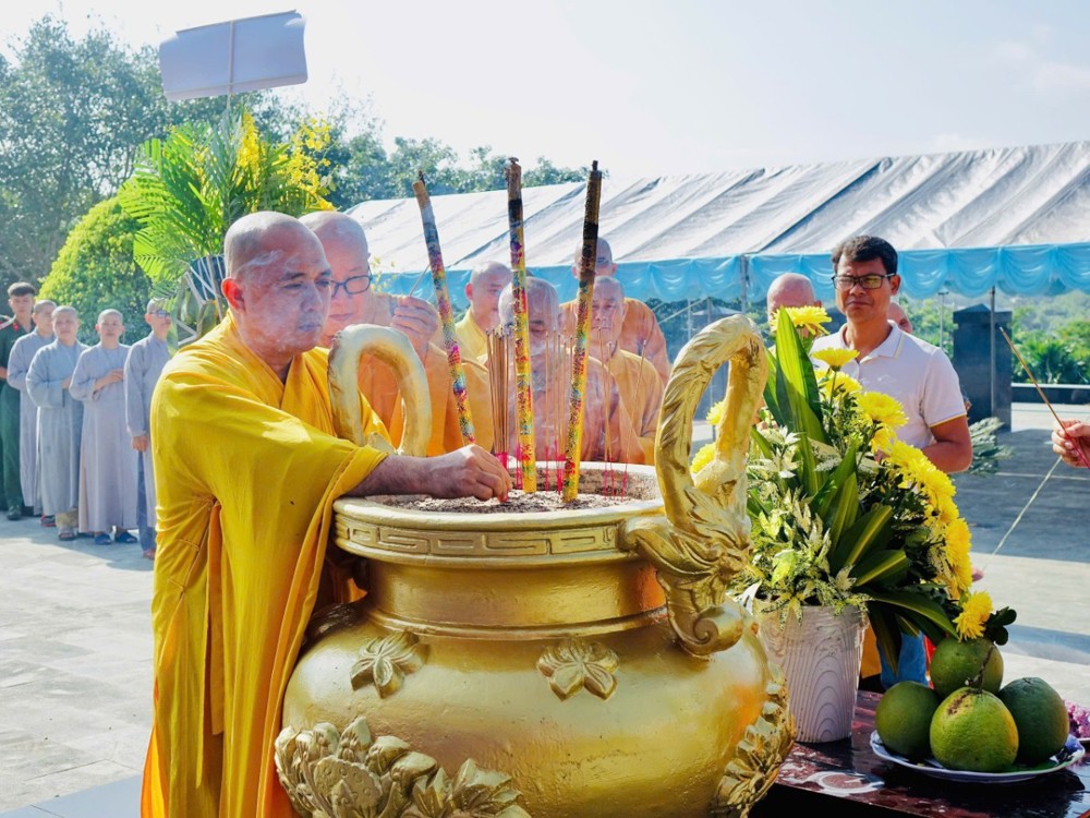 Tại lễ đài tưởng niệm, trong không gian lặng trang nghiêm của Nghĩa trang Liệt sĩ tỉnh, Thượng tọa Thích Linh Viên – Trưởng ban Nghi lễ Giáo hội Phật giáo tỉnh, đã chủ trì nghi lễ dâng hương, đặt vòng hoa và cầu nguyện cho các anh hùng liệt sĩ. Đại đức Thích Bửu Hòa – Phó Thư ký, Chánh Văn phòng Ban Trị sự, đã xúc động đọc lời tưởng niệm, thay mặt Ban Trị sự bày tỏ tấm lòng tri ân sâu sắc đối với các bậc tiền nhân đã hy sinh vì sự trường tồn của đất nước.