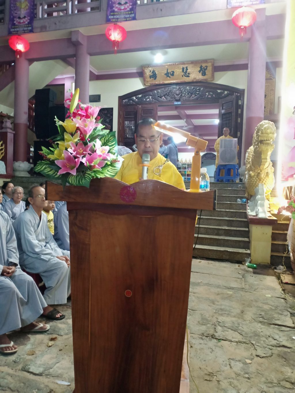 Về chứng minh tham dự lễ có Hòa thượng Thích Trừng khiết - Thành viên HĐCM GHPGVN, Chứng minh BTS tỉnh, Viện chủ chùa Quảng Đức, Chứng minh Ban Tổ chức Đại lễ; TT.Thích Thông Lý - Trưởng Ban Phật giáo Quốc tế BTS tỉnh; ĐĐ. Thích Đức Thành - Phó BTS PG Tx Lagi, Trụ trì chùa Quảng Đức, Trưởng BTC lễ, cùng Tăng chúng trong bổn tự và hơn 500 tín đồ Phật tử gần xa về tham dự.