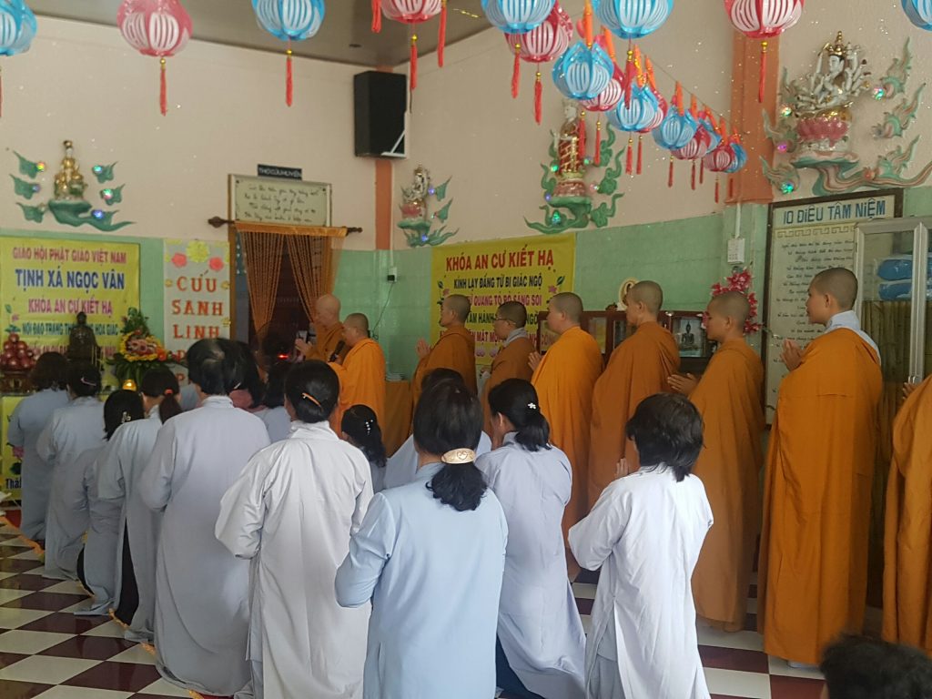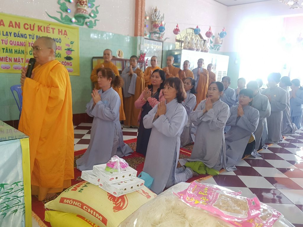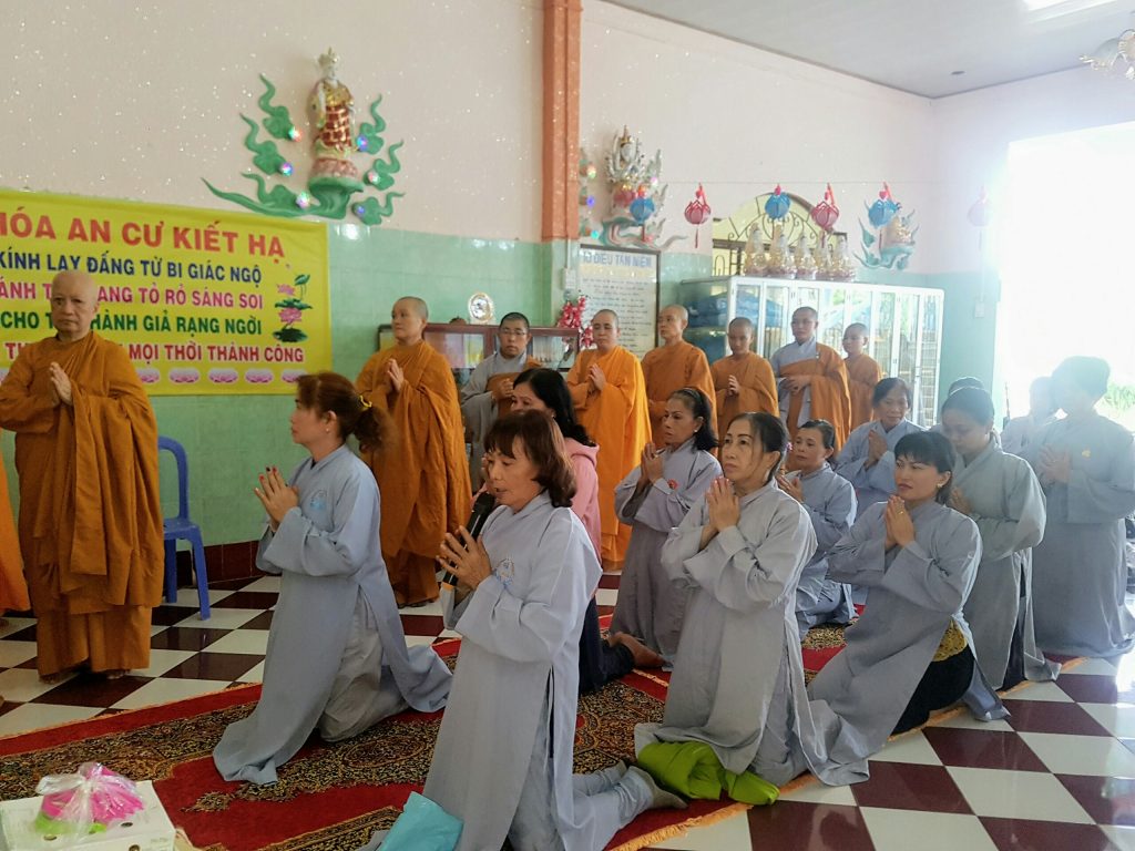 Buổi lễ Tác pháp cúng dường Trường hạ dưới sự chứng minh của tam vị Ni Trưởng: Ni trưởng Hiện Liên - Thiền chủ Trường Hạ; Ni Trưởng Đền Liên - Phó Thiền chủ; Ni trưởng Pháp Liên - Phó Ban Chức sự Trường hạ, cùng chư Tôn đức Ni hành giả An cư đồng tham dự.