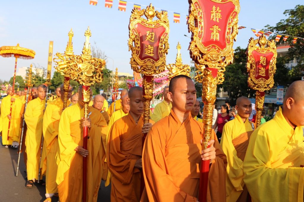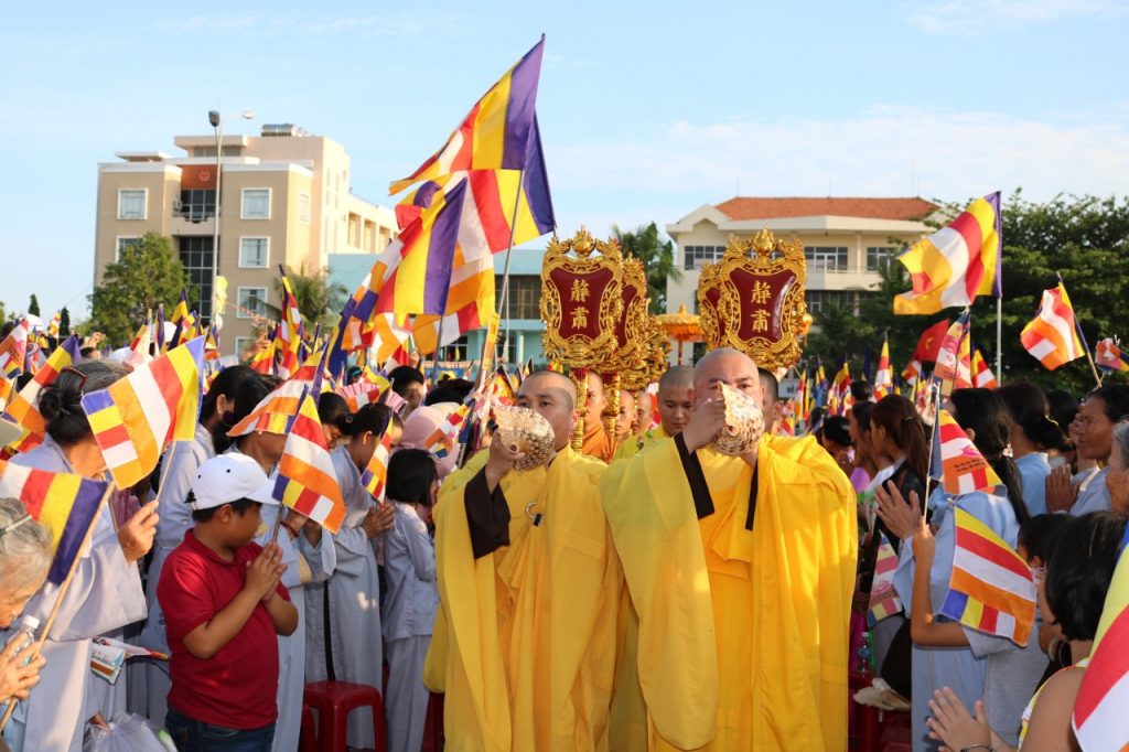Đoàn rước khởi hành từ chùa Phật Ân – Văn Phòng BTS về Quảng Trường Nguyễn Tất Thành – TP. Phan Thiết, nơi lễ đài chính của Phật giáo tỉnh làm lễ Mộc dục (Tắm Phật).
