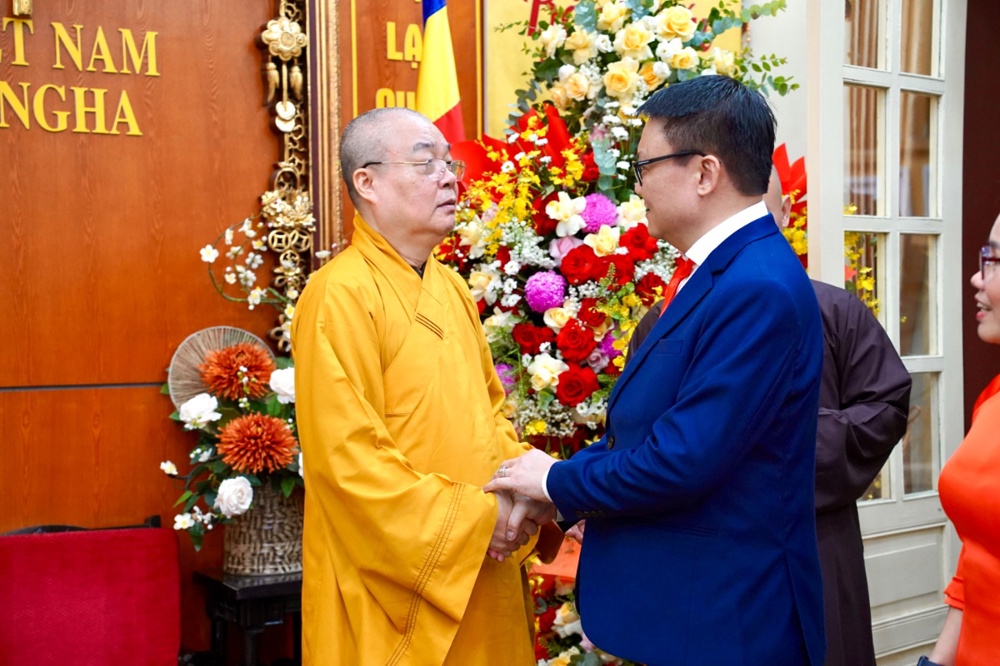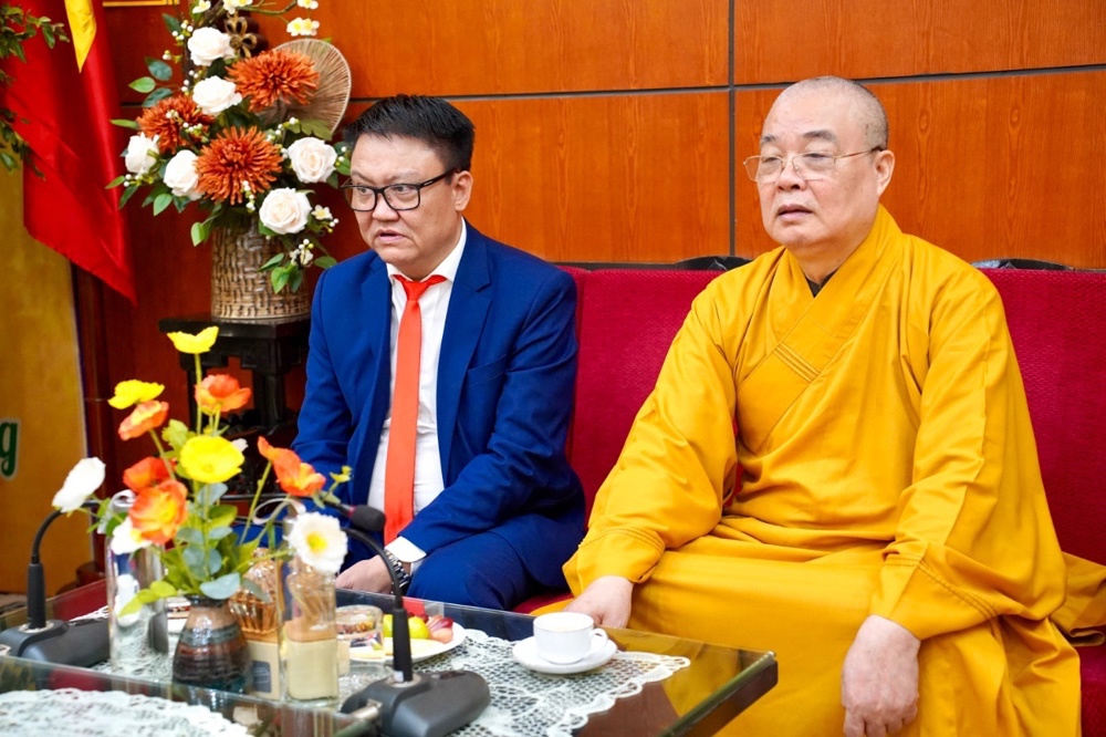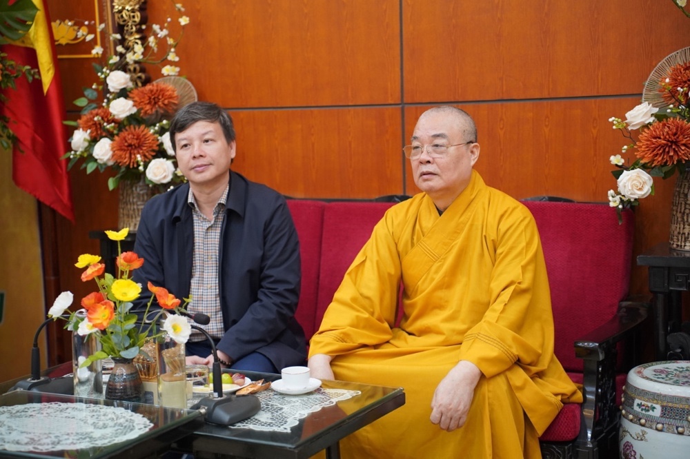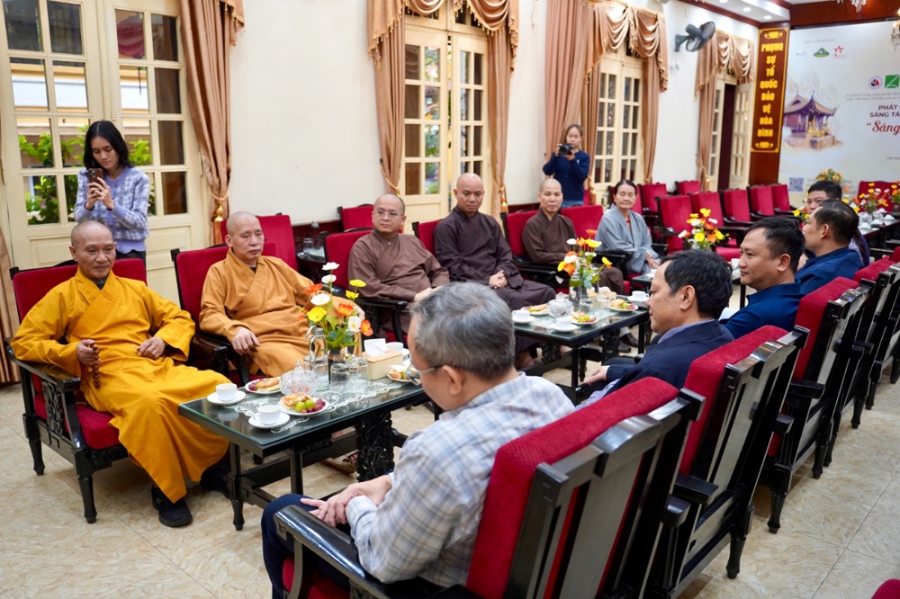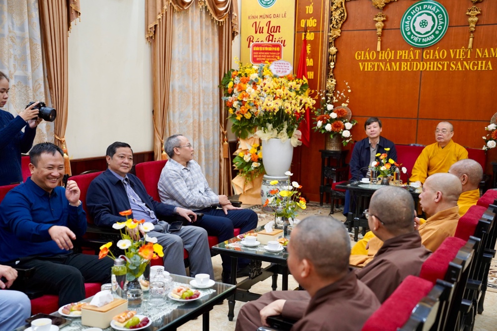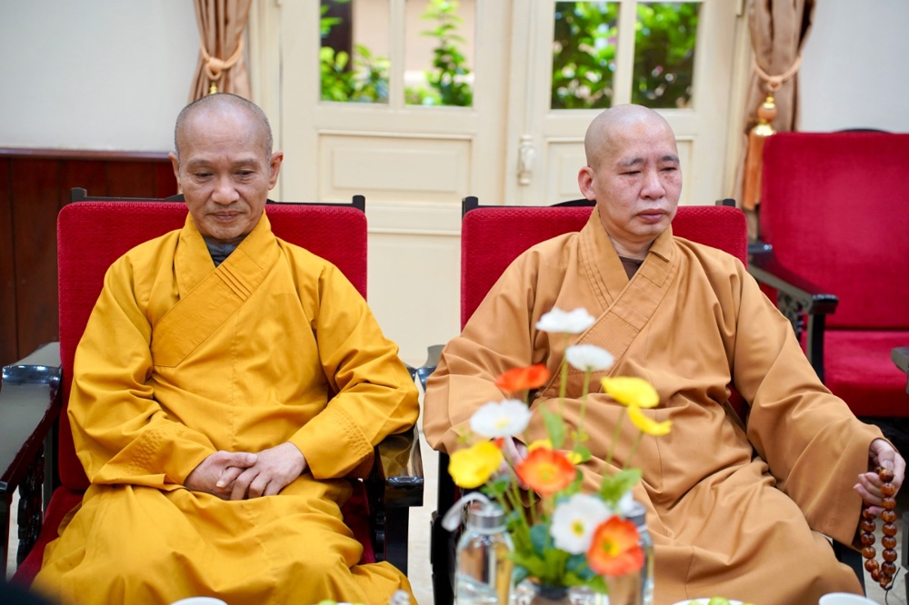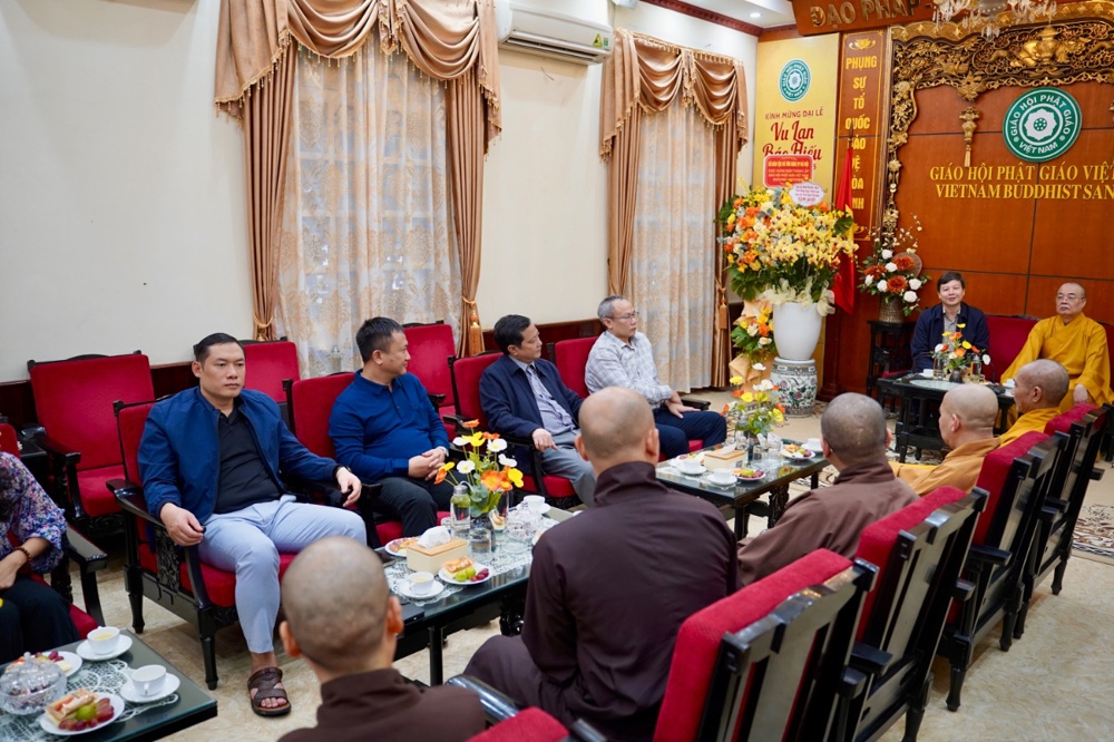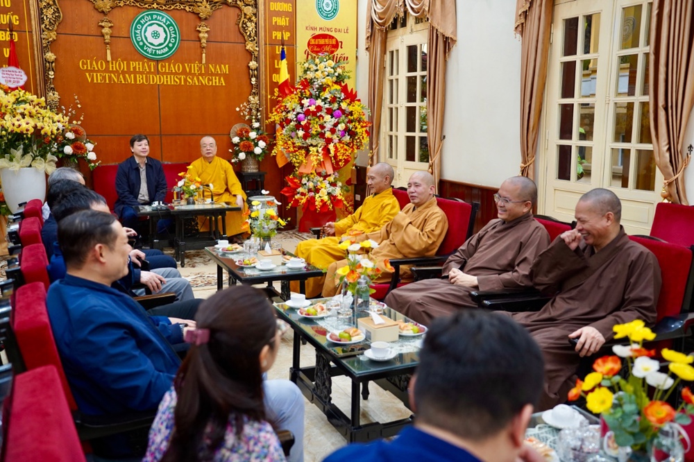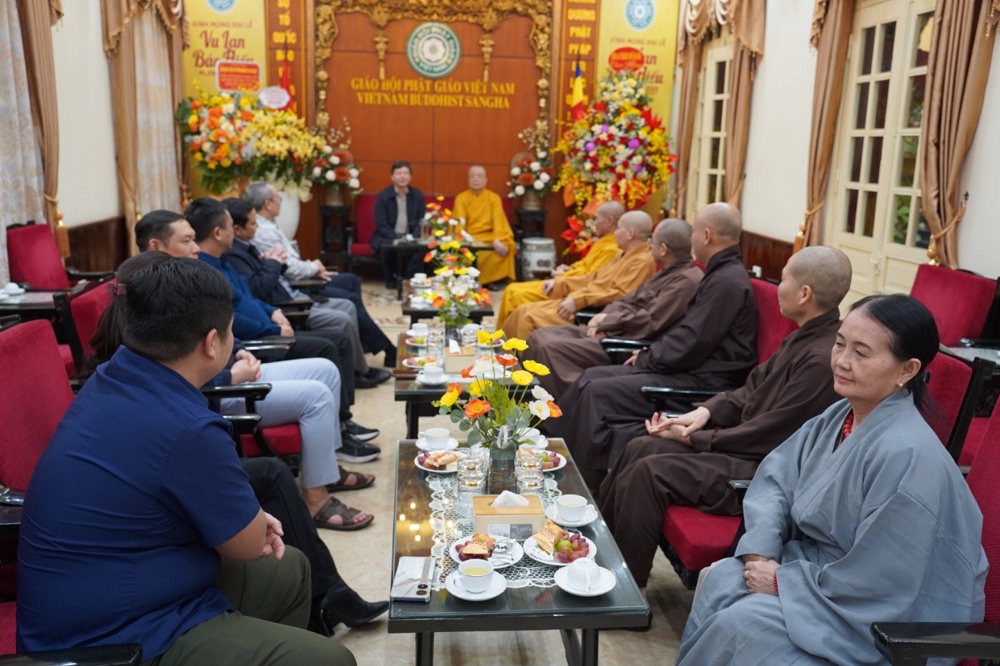 Thân mật đón tiếp các phái đoàn có Trưởng lão Hòa thượng Thích Thanh Nhiễu, Ủy viên Thường trực Hội đồng chứng minh, Phó Chủ tịch Thường trực HĐTS GHPGVN; Hòa thượng Thích Thanh Điện, Phó Chủ tịch Hội đồng Trị sự T.Ư GHPGVN, Phó Thường trực Ban Hướng dẫn Phật tử T.Ư; Thượng tọa Thích Thanh Tuấn, Phó Tổng Thư ký Hội đồng Trị sự, Chánh Văn phòng Trung ương GHPGVN; Đại đức Thích Nguyên Chính, Ủy viên Thư ký, Phó Chánh Văn phòng Thường trực Trung ương GHPGVN cùng chư Tôn đức Tăng Ni Văn phòng TƯ GHPGVN