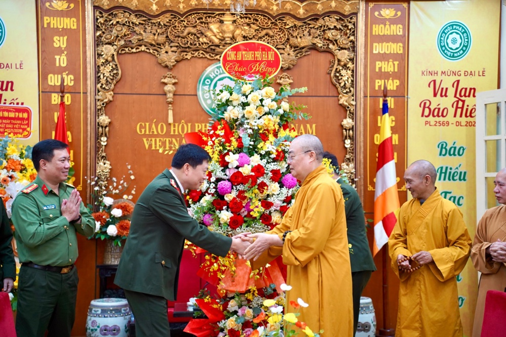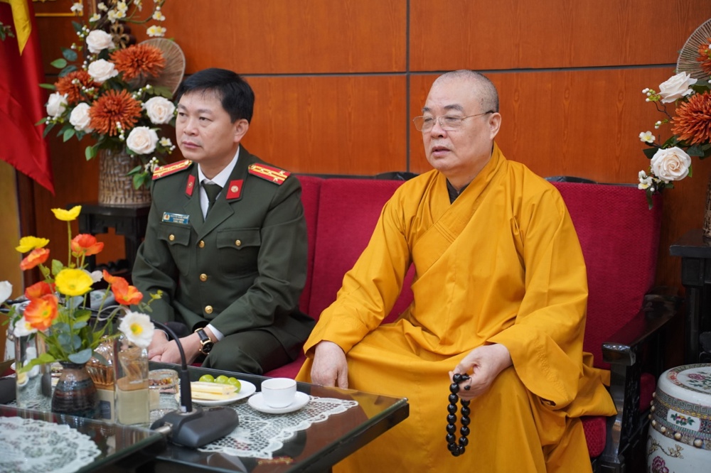 Cảm ơn những việc làm, hoạt động có ý nghĩa của Giáo hội Phật giáo Việt Nam thời gian qua, đồng thời mong rằng Giáo hội tiếp tục chỉ đạo, hướng dẫn Tăng Ni, Phật tử hoạt động tuân thủ pháp luật, theo đúng phương châm “Đạo pháp - Dân tộc - Chủ nghĩa xã hội”, có nhiều đóng góp tích cực cho công tác an sinh xã hội và các hoạt động phật sự của Giáo hội, đảm bảo an ninh trật tự, góp phần xây dựng đất nước và Thủ đô ngày càng văn minh, giàu đẹp.Lãnh đạo Bộ Công An và Tp Hà Nội mong muốn và tin tưởng GHPGVN với uy tín và vị thế của mình, sẽ tiếp tục đồng hành cùng lực lượng Công an nhân dân, tích cực vận động tăng ni, phật tử tham gia phong trào “Toàn dân bảo vệ an ninh Tổ quốc”, góp phần giữ gìn sự bình yên của đất nước, bảo vệ thành quả của công cuộc đổi mới, phát triển Thủ đô ngày càng giàu mạnh an ninh trật tự