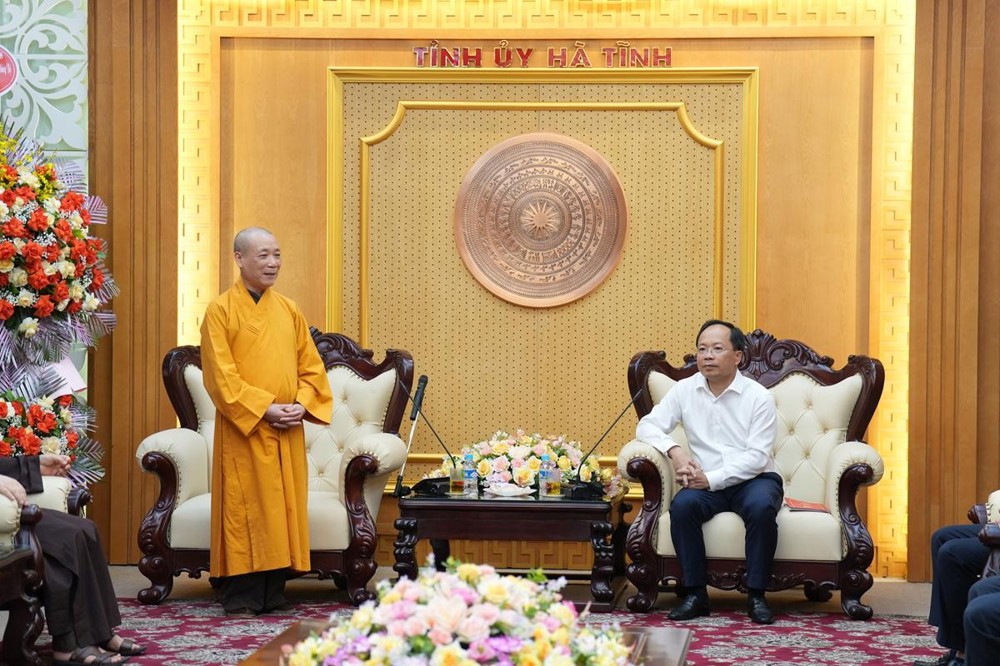 Bí thư Tỉnh ủy khẳng định, từ thành công của đại hội, Đảng bộ tỉnh sẽ tiếp tục phát huy truyền thống đoàn kết, thống nhất để thực hiện thắng lợi các mục tiêu, chỉ tiêu mà Nghị quyết Đại hội đã đề ra, đưa Hà Tĩnh ngày càng phát triển, đời sống vật chất, tinh thần của người dân ngày càng được nâng cao. Trong quá trình thực hiện các nhiệm vụ chính trị, mong muốn Giáo hội Phật giáo Việt Nam tỉnh có sự phối hợp, đồng hành chặt chẽ cùng với cấp ủy, chính quyền, động viên các tăng ni, Phật tử thực hiện tốt các phong trào thi đua, cuộc vận động góp phần xây dựng quê hương ngày càng văn minh, giàu mạnh.