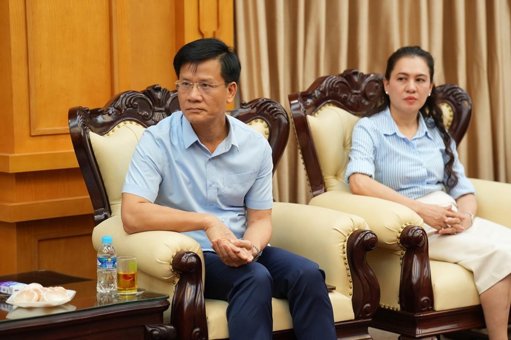 Bí thư Tỉnh ủy Nguyễn Duy Lâm, Trưởng ban Tuyên giáo và Dân vận Tỉnh ủy Hà Văn Hùng, Chủ tịch Ủy ban MTTQ tỉnh Trần Nhật Tân, Phó Chủ tịch UBND tỉnh Trần Báu Hà đón tiếp đoàn.