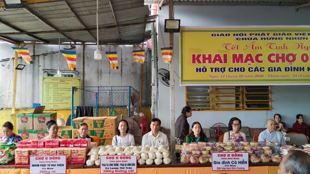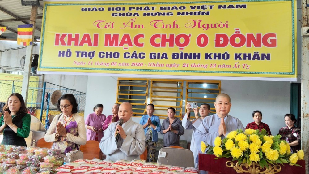 PSO- Trước thềm Tết Nguyên đán, sáng ngày 11/02/2026 (24 tháng Chạp năm Ất Tỵ) Sư cô Thích Nữ Diệu Mẫn, Phó Ban TTXH PG tỉnh, trụ trì chùa Hưng Nhơn, xã Lương Thế Trân, phối hợp cùng Ban TTXH Phật giáo tỉnh và các nhà hảo tâm tổ chức chương trình Tết Ấm Tình Người bằng Phiên chợ 0 đồng, trị giá 150 triệu đồng, cho 250 hộ nghèo tại địa phương.
