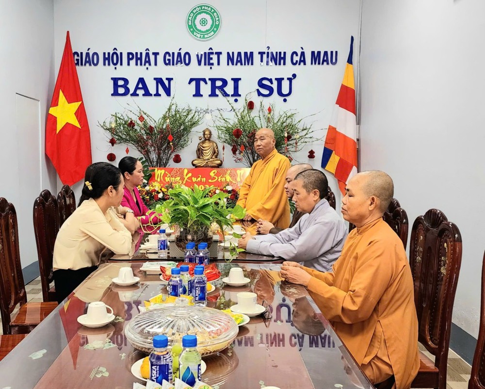 10 giờ sáng cùng ngày, tại Trụ sở BTS PG tỉnh Cà Mau, Thượng tọa Thích Phước Lợi và Đại đức Thích Phước Hạnh đã đón tiếp đoàn Sở Dân tộc và Tôn giáo tỉnh do bà Nguyễn Thu Tư, Giám đốc Sở, dẫn đầu đến thăm và chúc Tết.