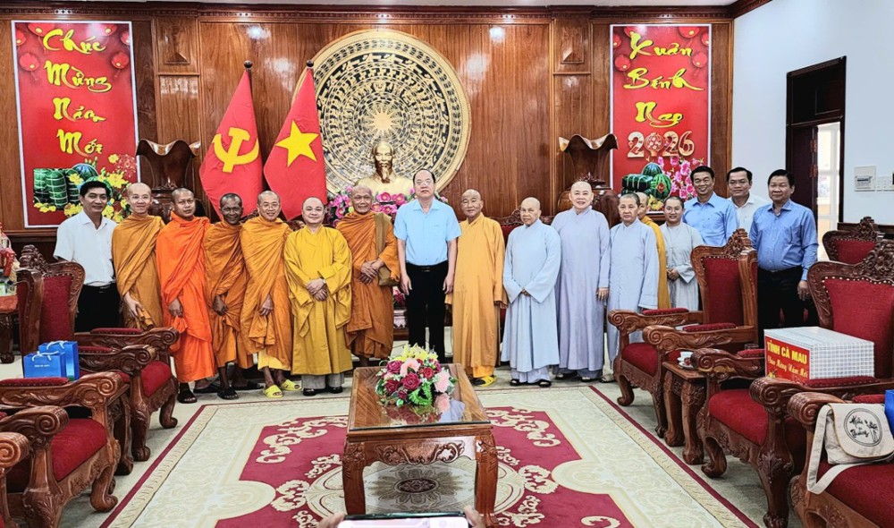 PSO- Trước thềm Xuân Bính Ngọ, sáng ngày 04/02/2026, đoàn Ban Thường trực Ban Trị sự GHPGVN tỉnh Cà Mau do Hòa thượng Thạch Hà – Ủy viên HĐTS, Trưởng Ban Trị sự GHPGVN (BTS PG) tỉnh làm Trưởng đoàn đã đến thăm và chúc Tết Tỉnh ủy, UBND và UBMTTQVN tỉnh.
