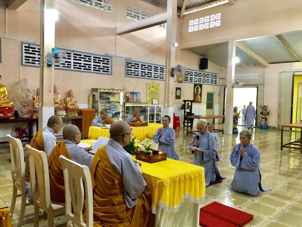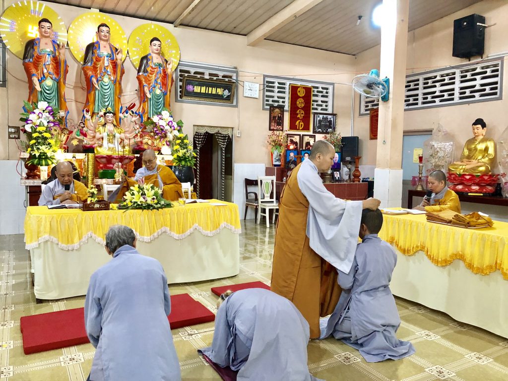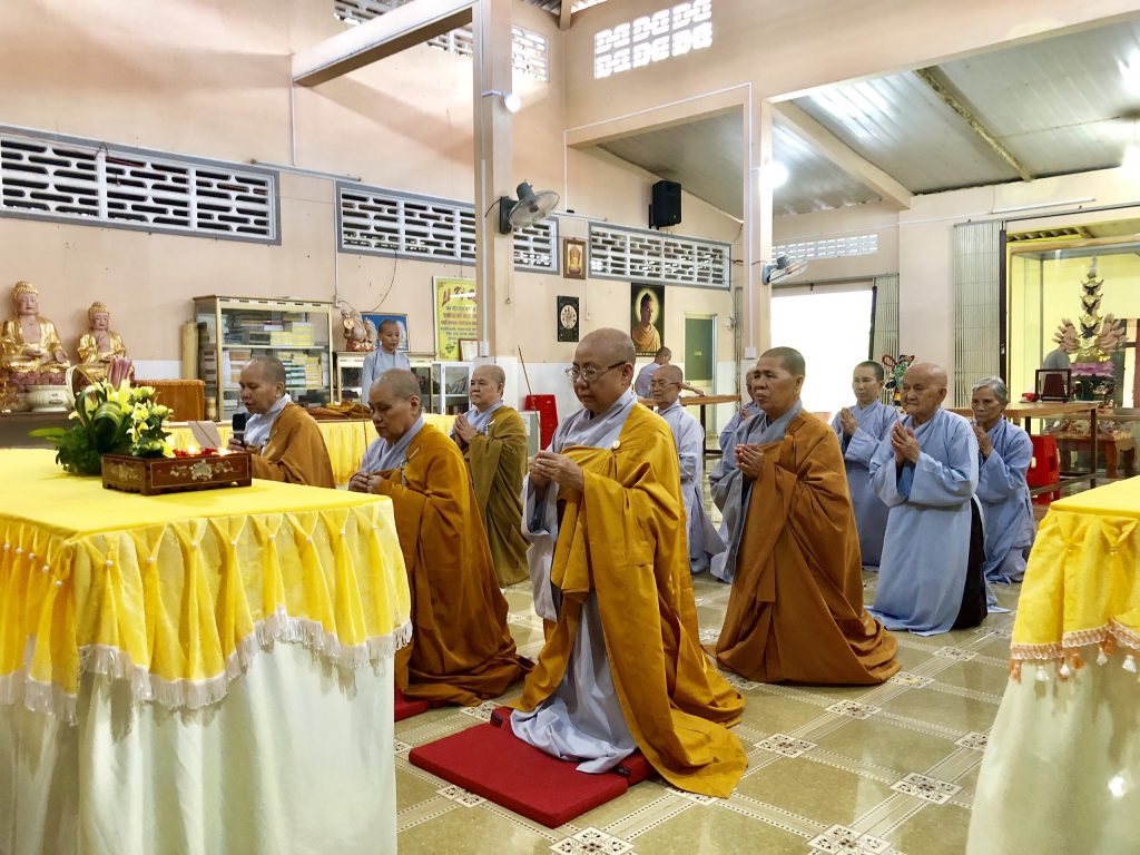 Lễ Xuất gia diễn ra trong sự hòa hợp thanh tịnh của Ni đoàn, sau nghi thức niêm hương bạch Phật đảnh lễ Tam Bảo, đại diện quý Phật tử phát tâm xuất gia dâng lời tác bạch, nói lên tâm nguyện cầu mong và khác ngưỡng được dự vào hàng đệ tử xuất gia của Phật đã ấp ủ từ lâu. Bởi đã được nương tựa Tam Bảo tu tập với sự dìu dắt của Ni sư Trụ trì nhiều năm, từ đó khơi nguồn mở lối và tự thân có được an lạc trong quá trình làm Phật tử tại gia thực hành theo lời Phật dạy.
